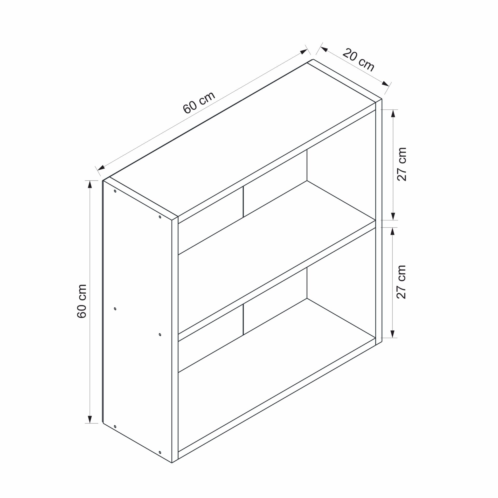 ✅ Ölçüler: Genişlik: 60 cm; Derinlik: 20 cm; Yükseklik: 60 cm.