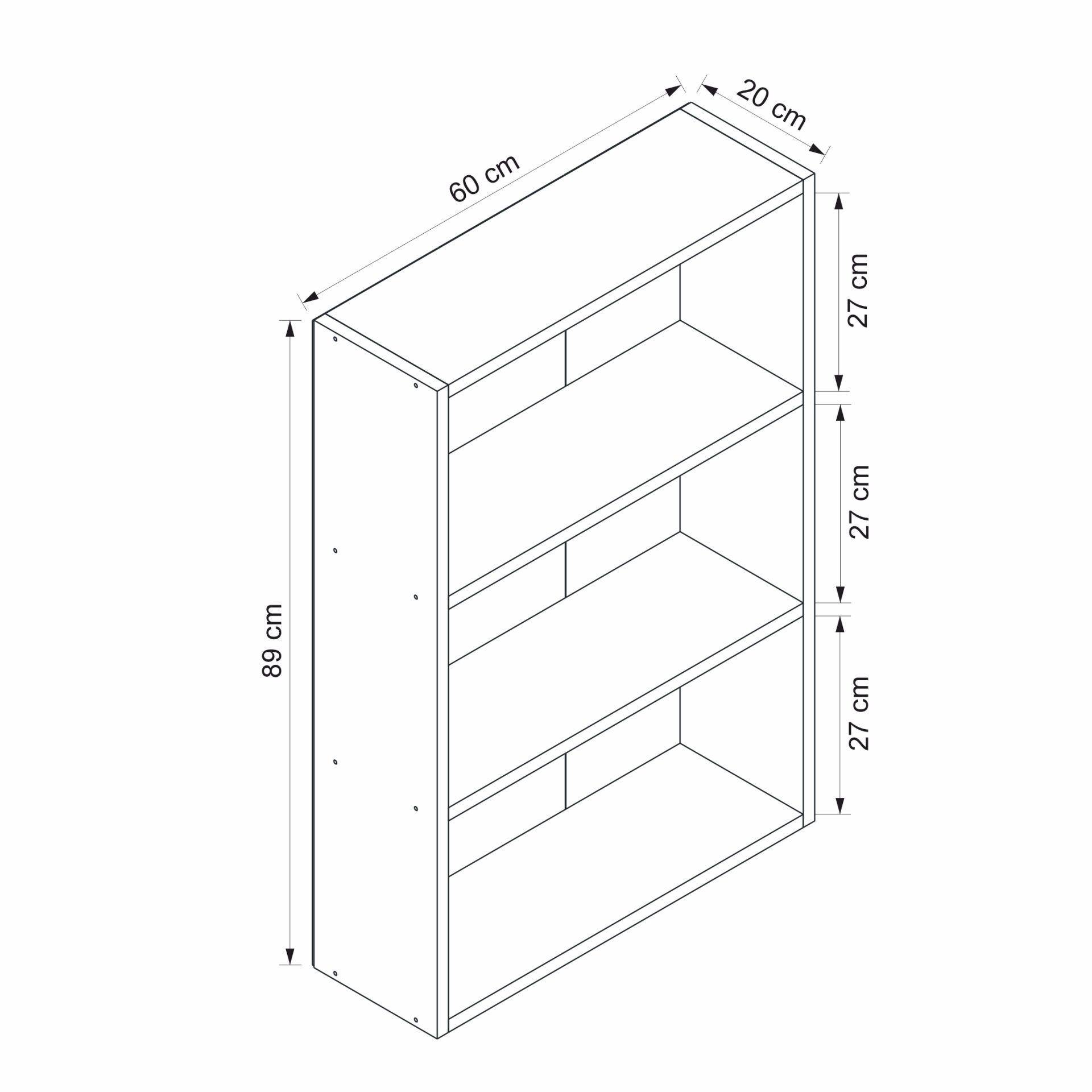 ✅ Ölçüler: Genişlik: 60 cm; Derinlik: 20 cm; Yükseklik: 89 cm.