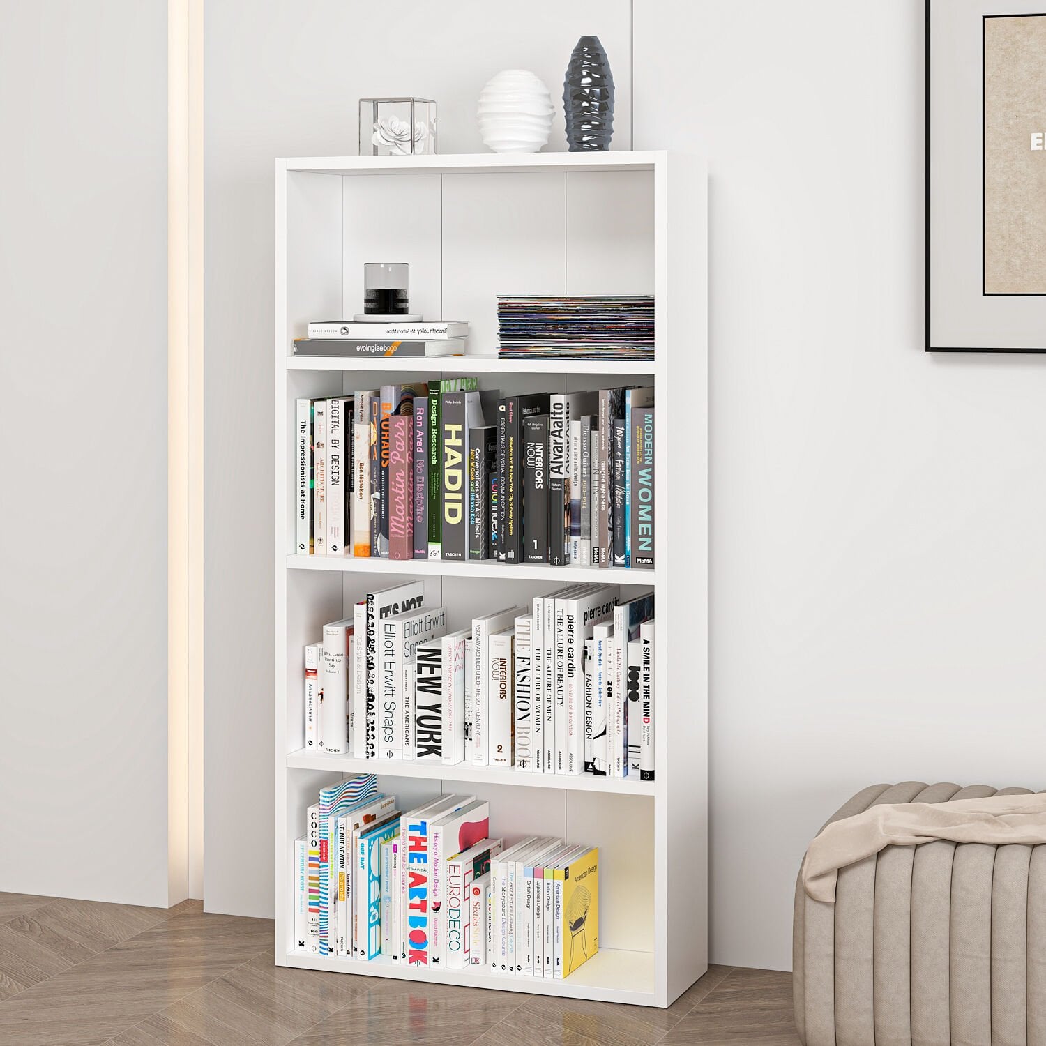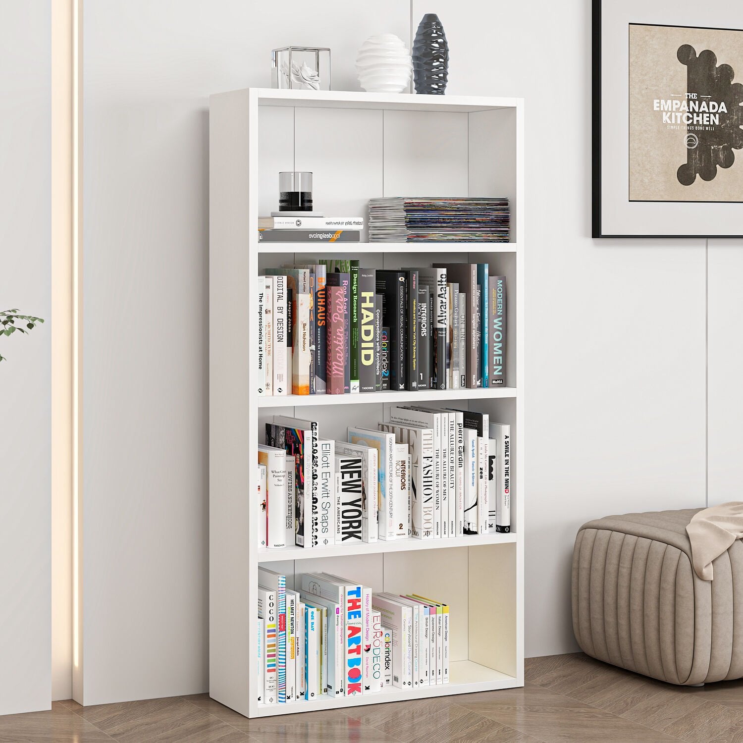 ✅ Renk: Beyaz – Temiz ve modern görünüm sağlar.✅ Raf sayısı: 3 raf, toplam 4 bölme – Kitap ve dekoratif ürünler için ideal.