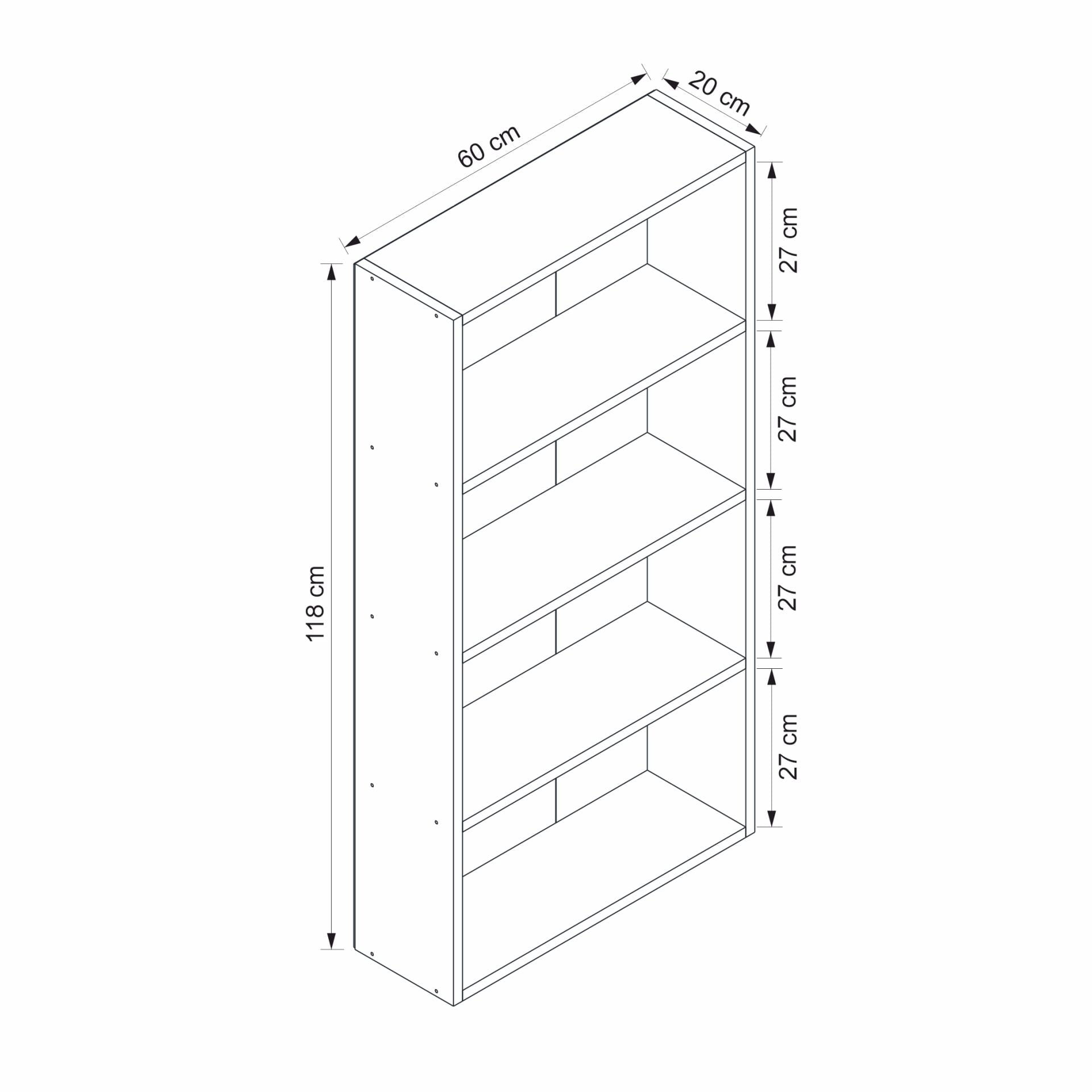 ✅ Ölçüler: Genişlik: 60 cm; Derinlik: 20 cm; Yükseklik: 118 cm.