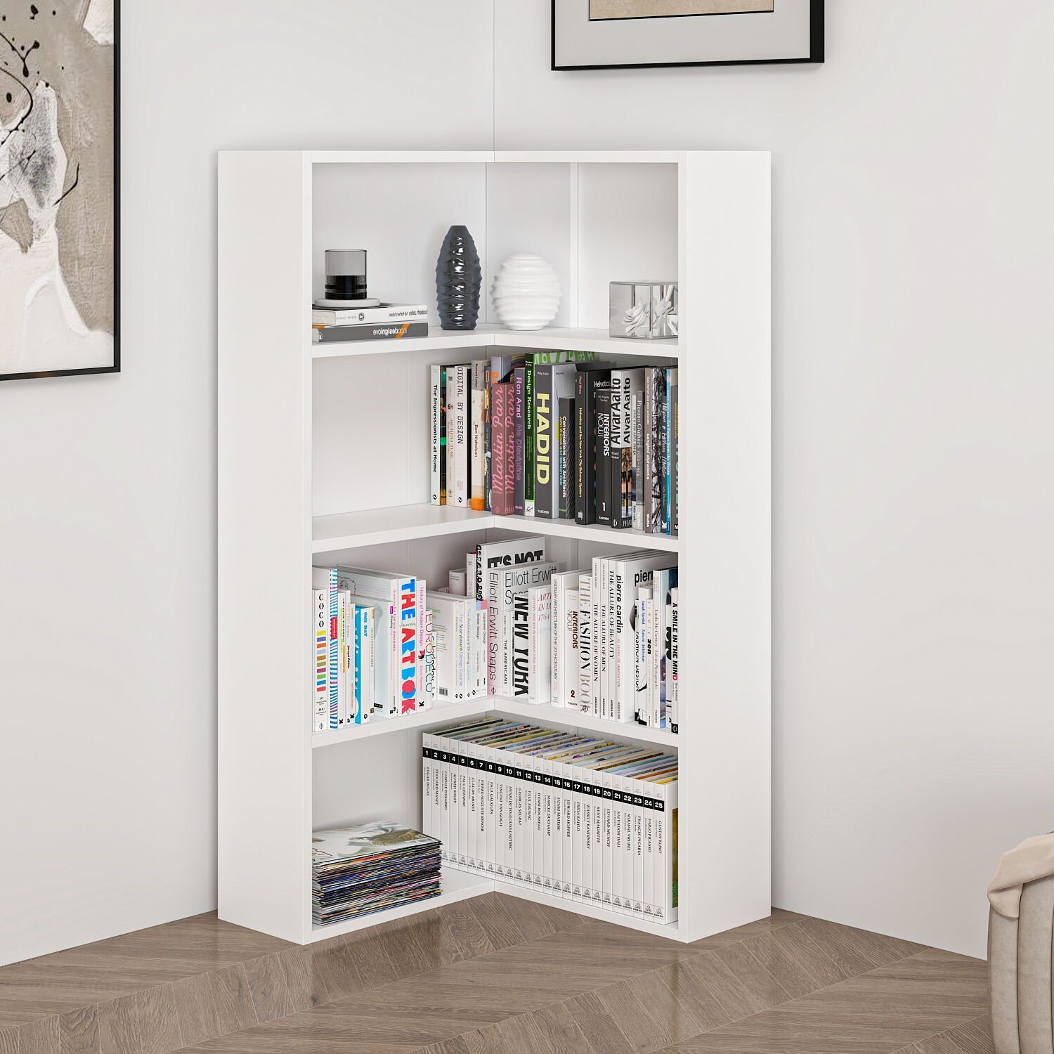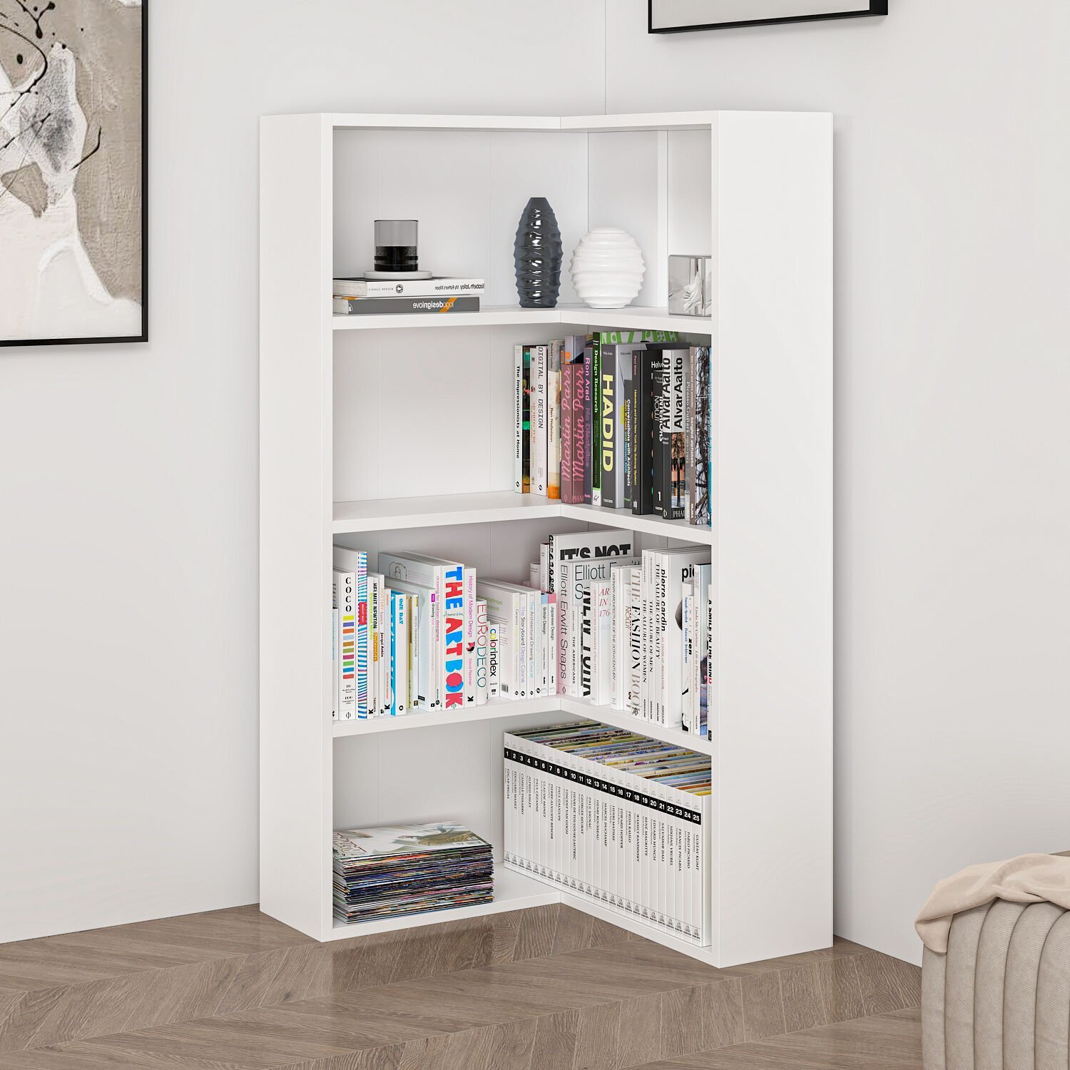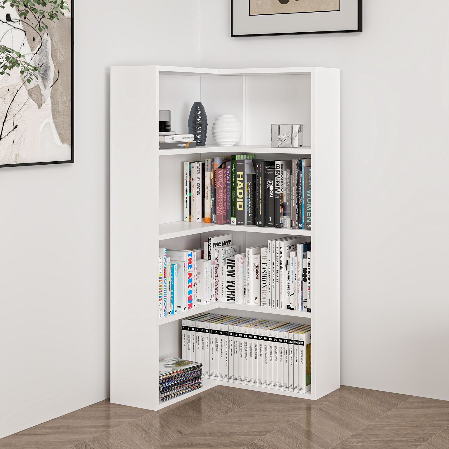 L köşe tasarımıyla köşeleri verimli kullanan Adel 3 Raflı Köşe Kitaplık, modern beyaz rengiyle her dekorasyona uyum sağlar.