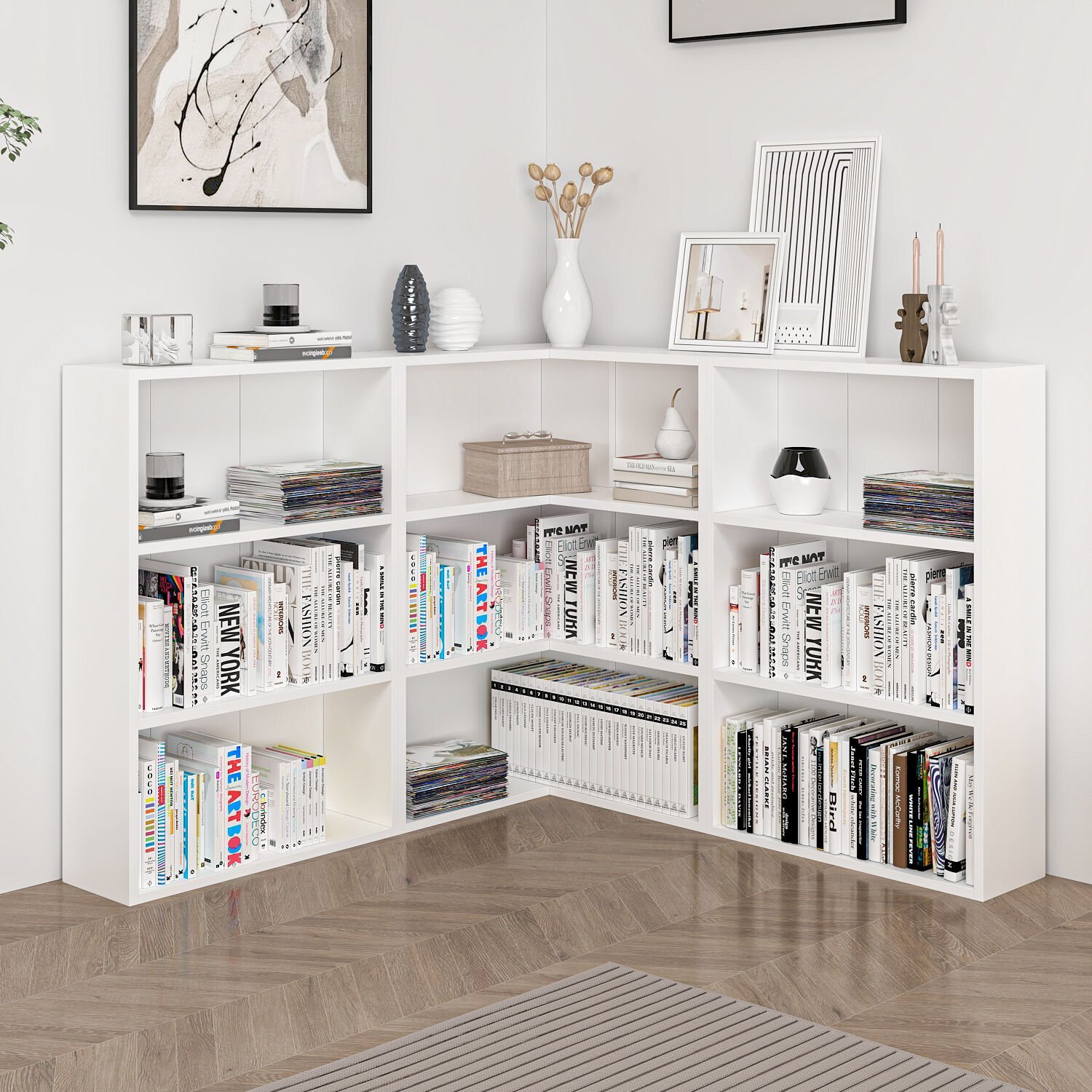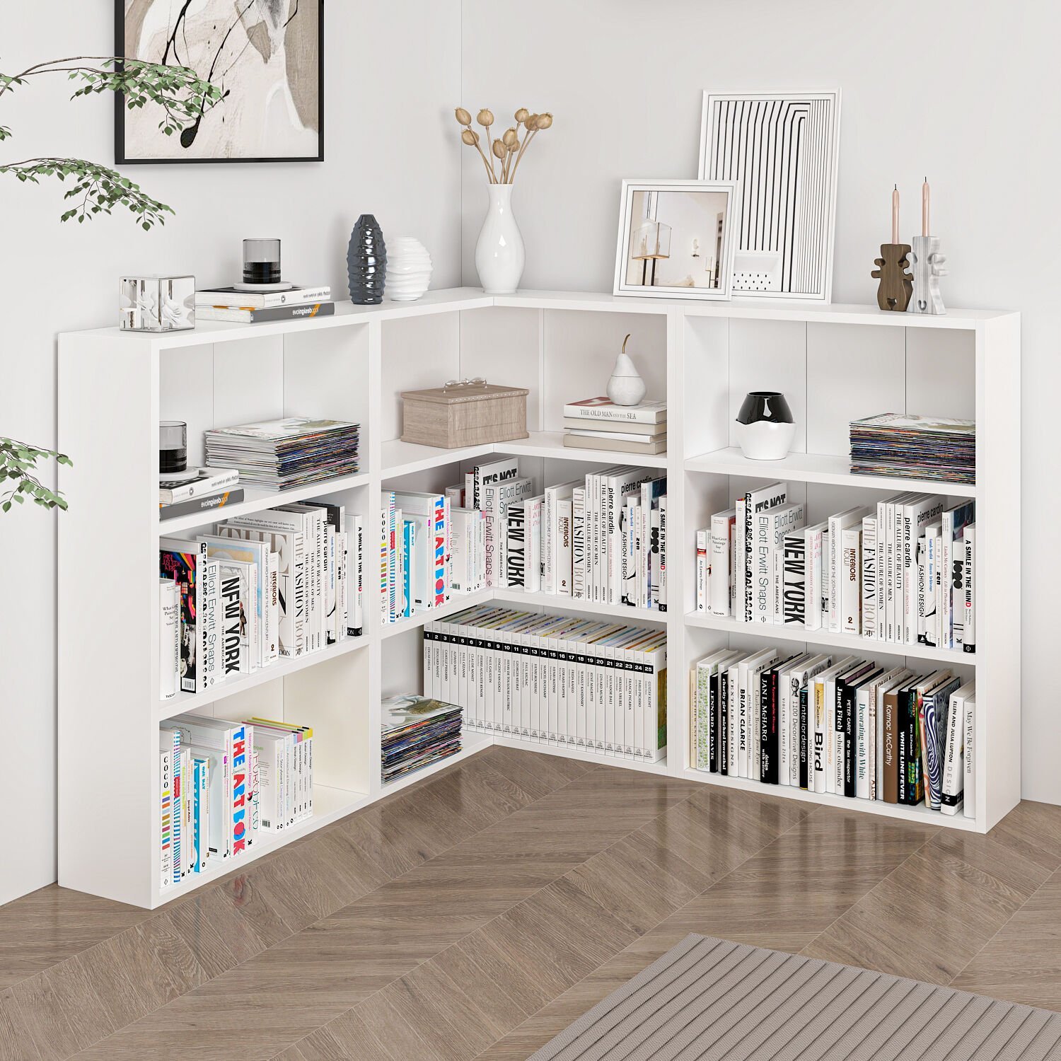 L köşe tasarımıyla odanın köşelerini verimli kullanan Adel 6 Raflı Köşe Kitaplık, şık beyaz rengiyle modern dekorasyonlara uyum sağlar.