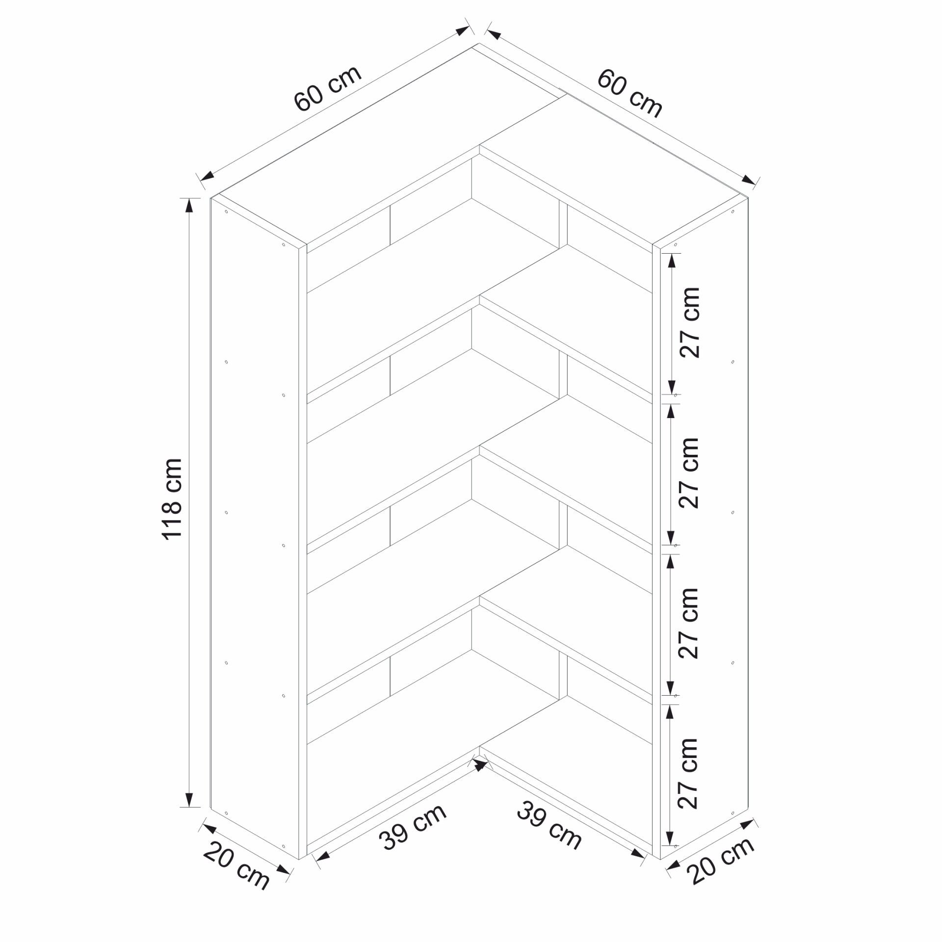 Odaların köşelerini maksimum verimle kullanmak için tasarlanmış Adel 9 Raflı Köşe Kitaplık, beyaz rengiyle modern ve ferah bir görünüm sunar.