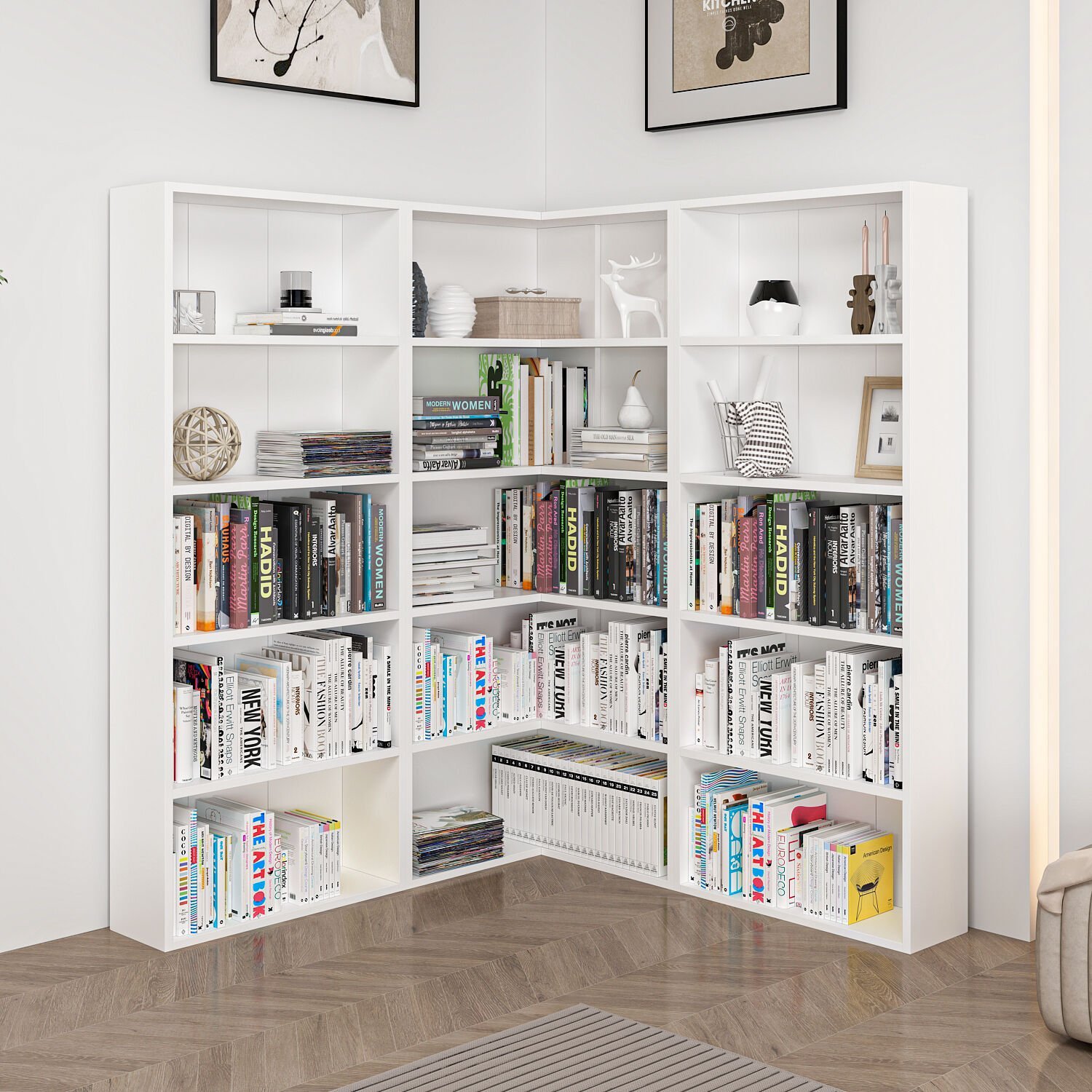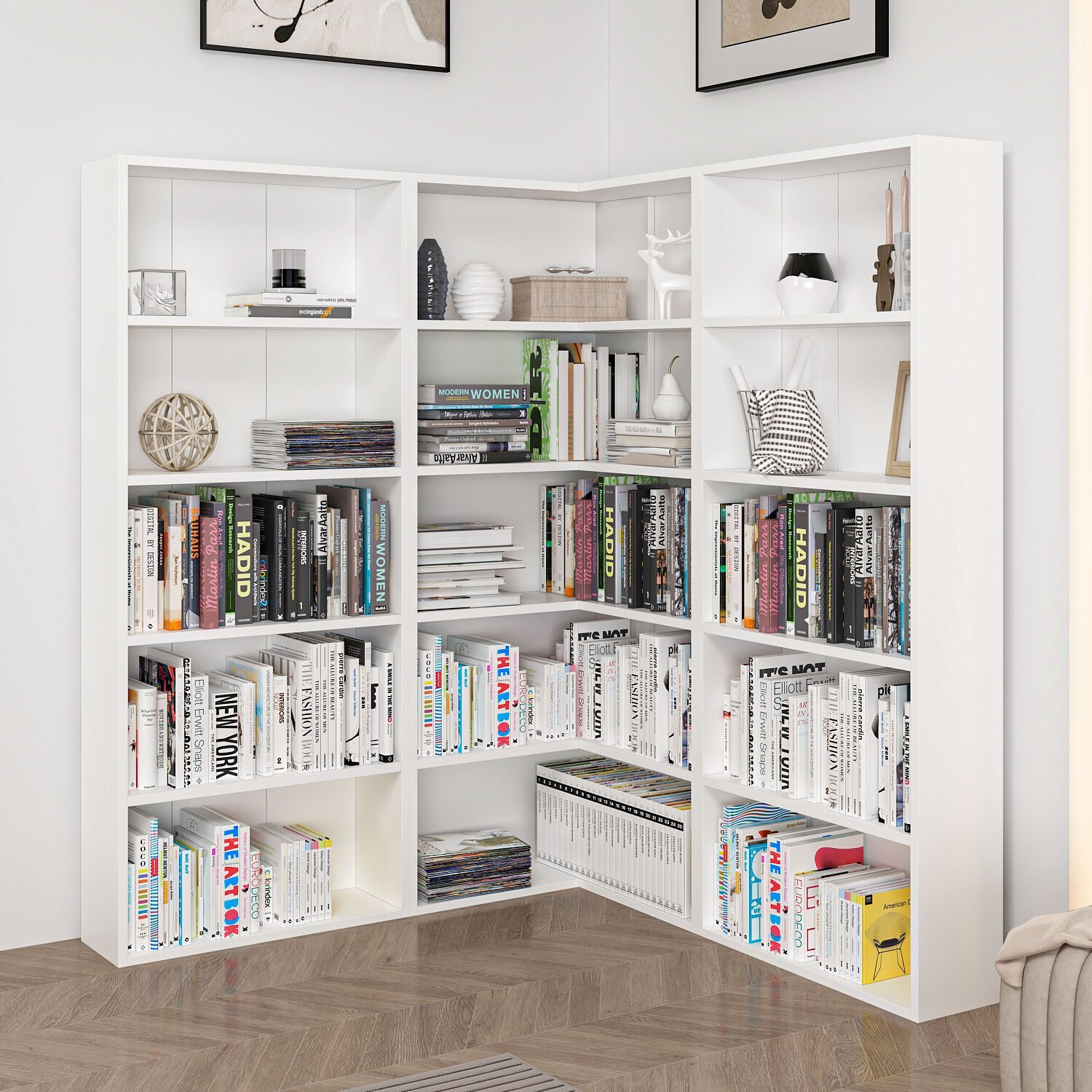 Odaların köşelerini verimli şekilde kullanmak için tasarlanmış Adel 12 Raflı Köşe Kitaplık, beyaz rengi ile modern ve ferah bir görünüm sunar.