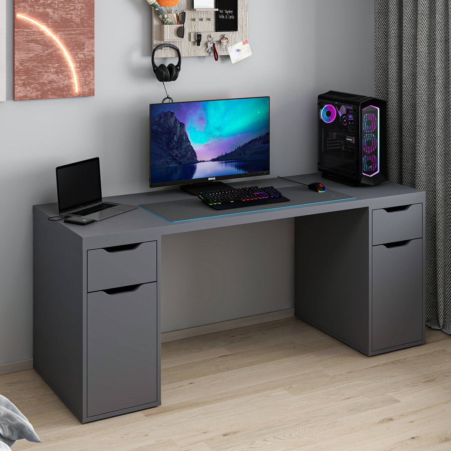 Alen 180 Cm 2 Çekmeceli 2 Dolaplı Çalışma & Oyuncu Masası - Antrasit