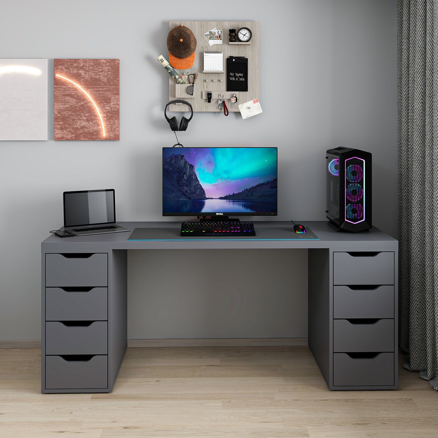Alen 180 Cm 8 Çekmeceli Geniş Çalışma & Oyuncu Masası - Antrasit
