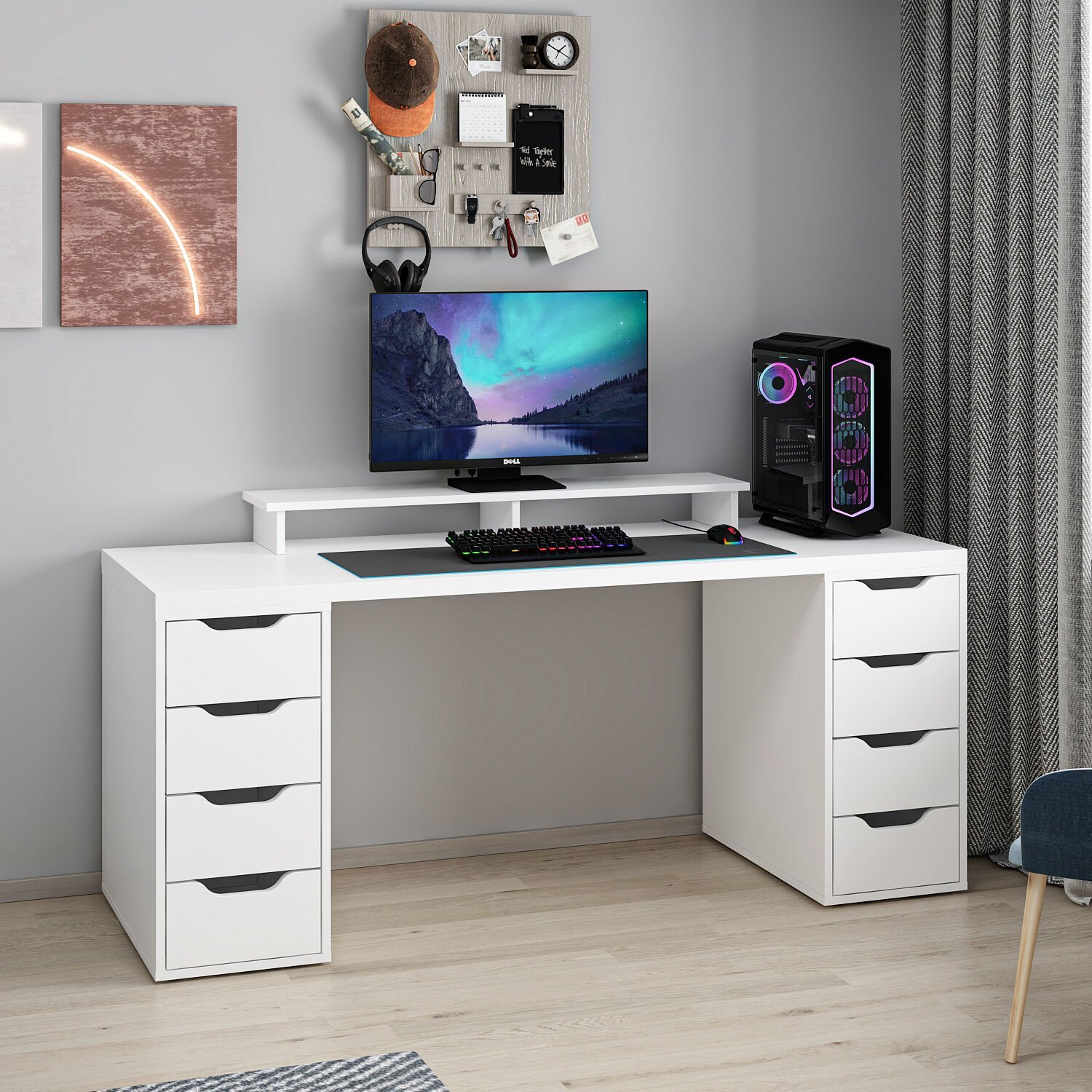 Alen 180 Cm 8 Çekmeceli Geniş Çalışma & Oyuncu Masası - Beyaz
