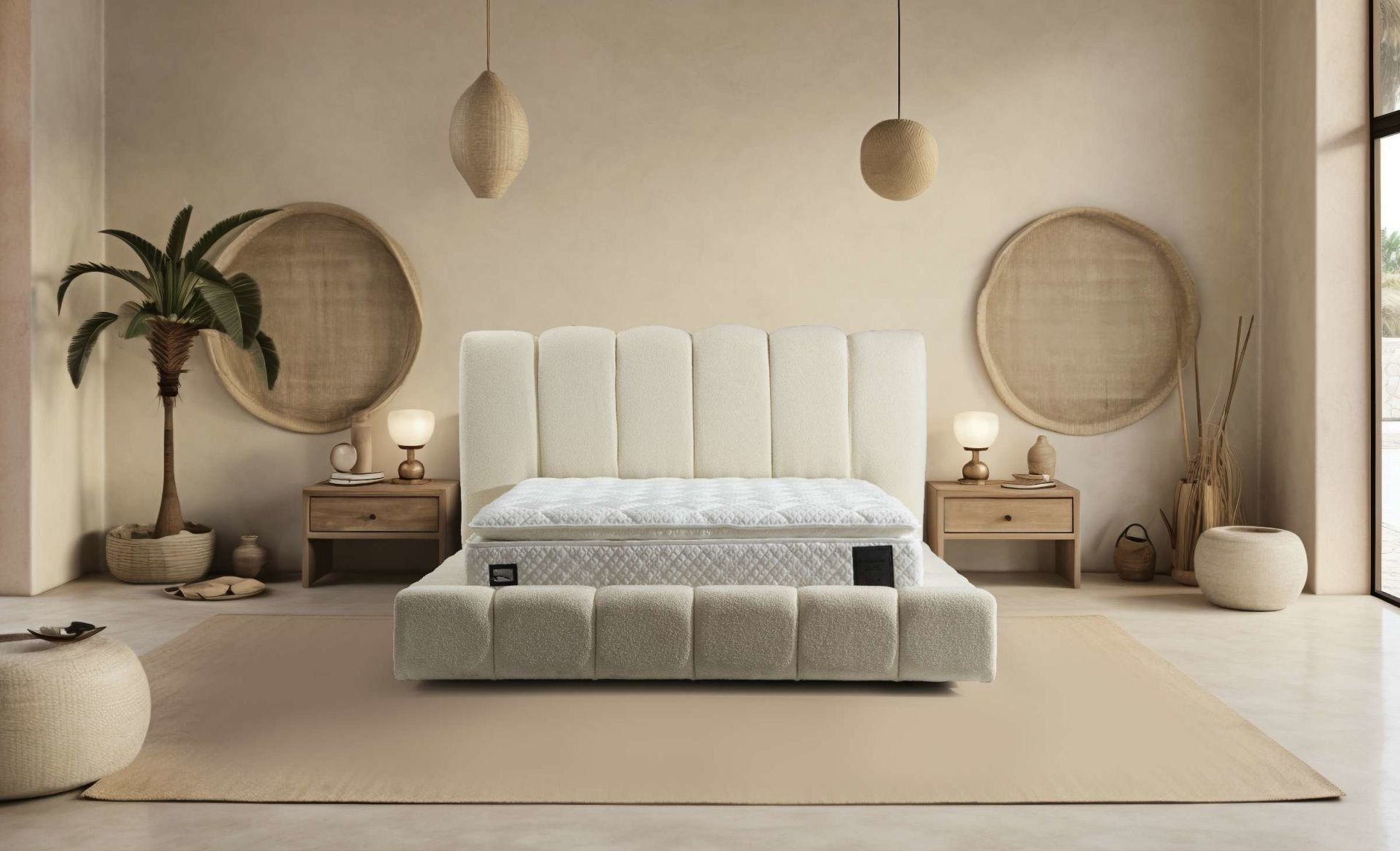 ✅ Ölçü seçenekleri: Genişlik: 170, 180, 200 cm; Derinlik: 240 cm; Baza yüksekliği: 130 cm — farklı oda boyutlarına uygun esneklik.