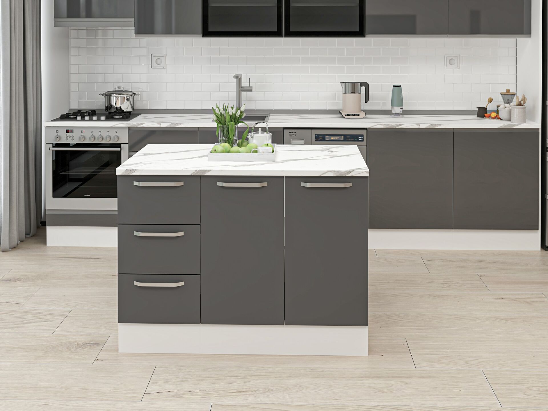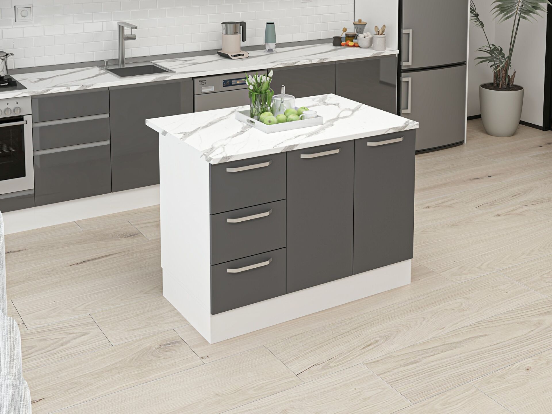 Alvinka 120 Cm Duz Ada Mutfak Dolabı Beyaz Antrasit