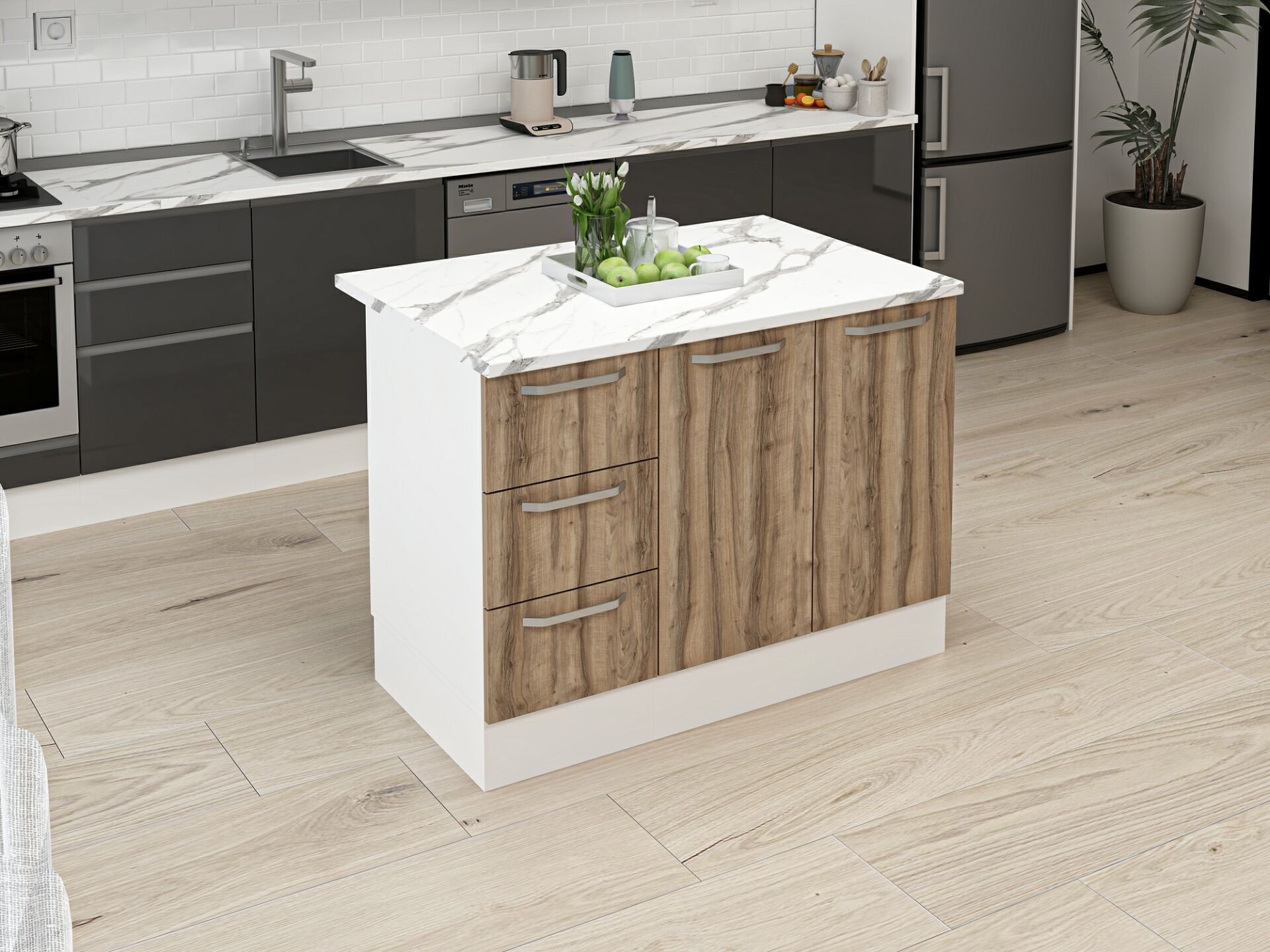 120 cm Genişlik: Orta ölçekli mutfaklar için ideal ölçü sunar.