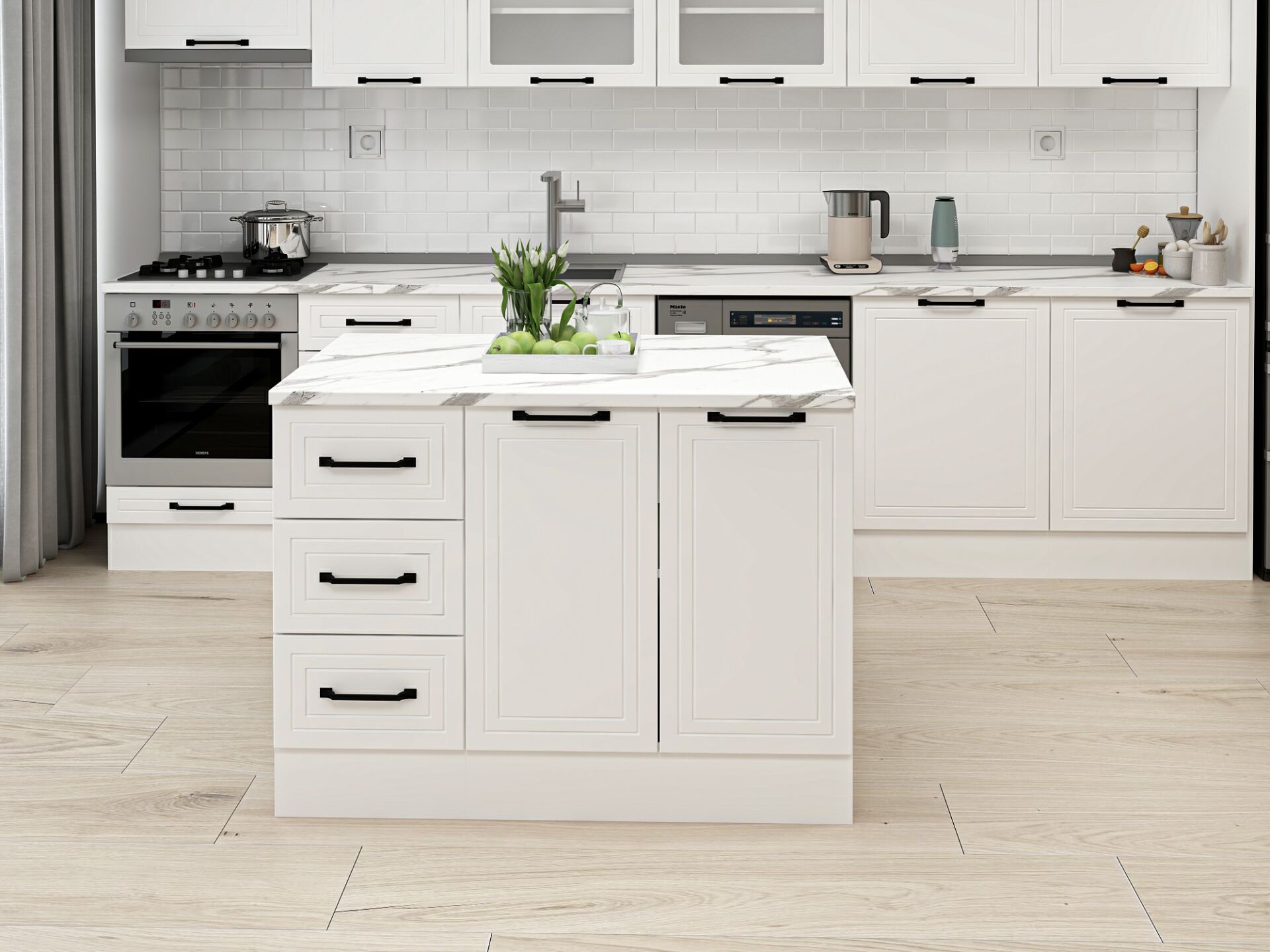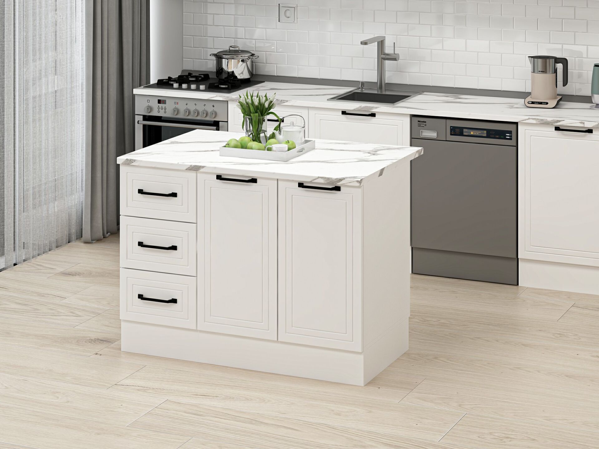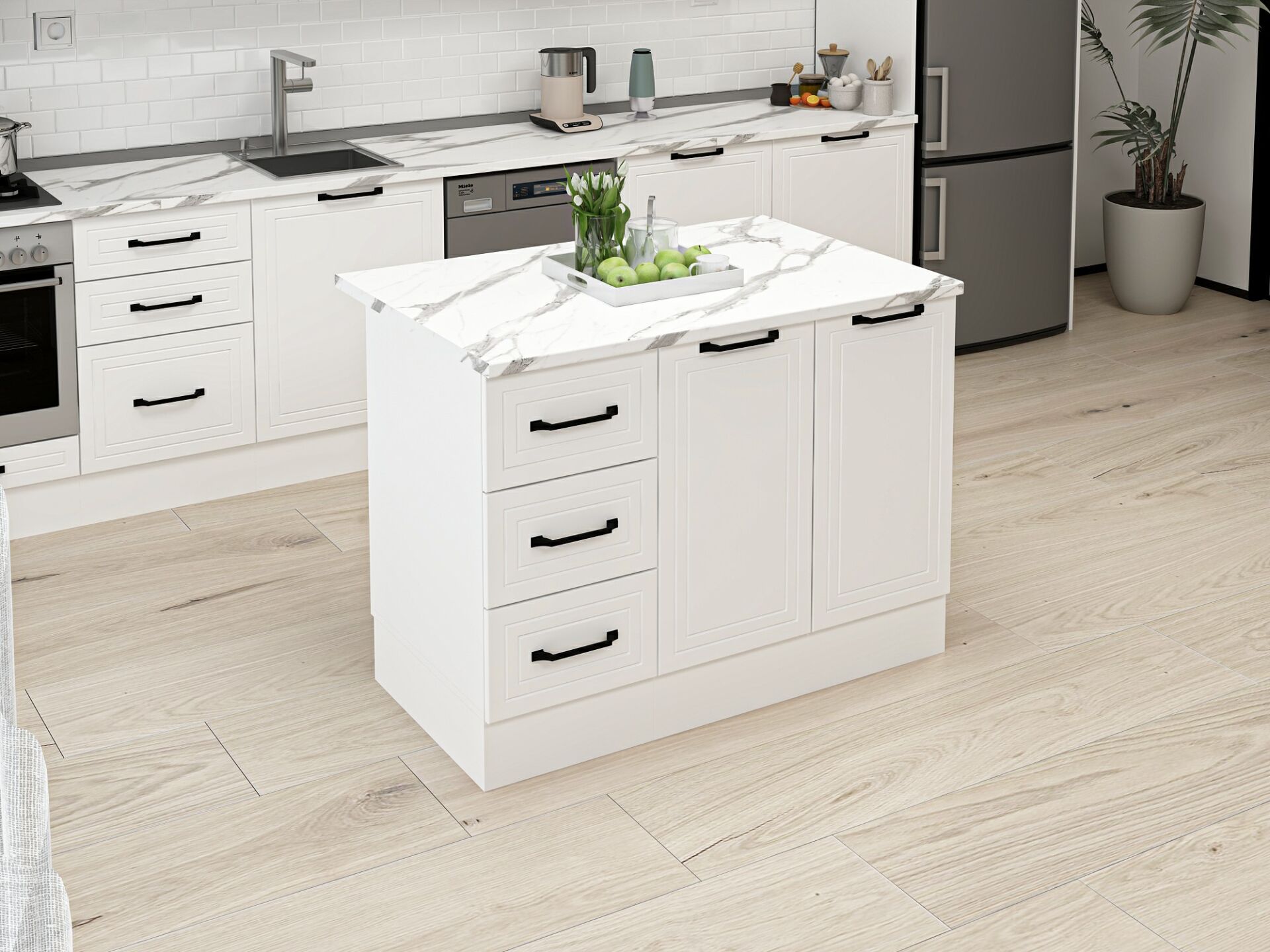 Alvinka 120 Cm Mbr_A Ada Mutfak Dolabı Beyaz Beyaz