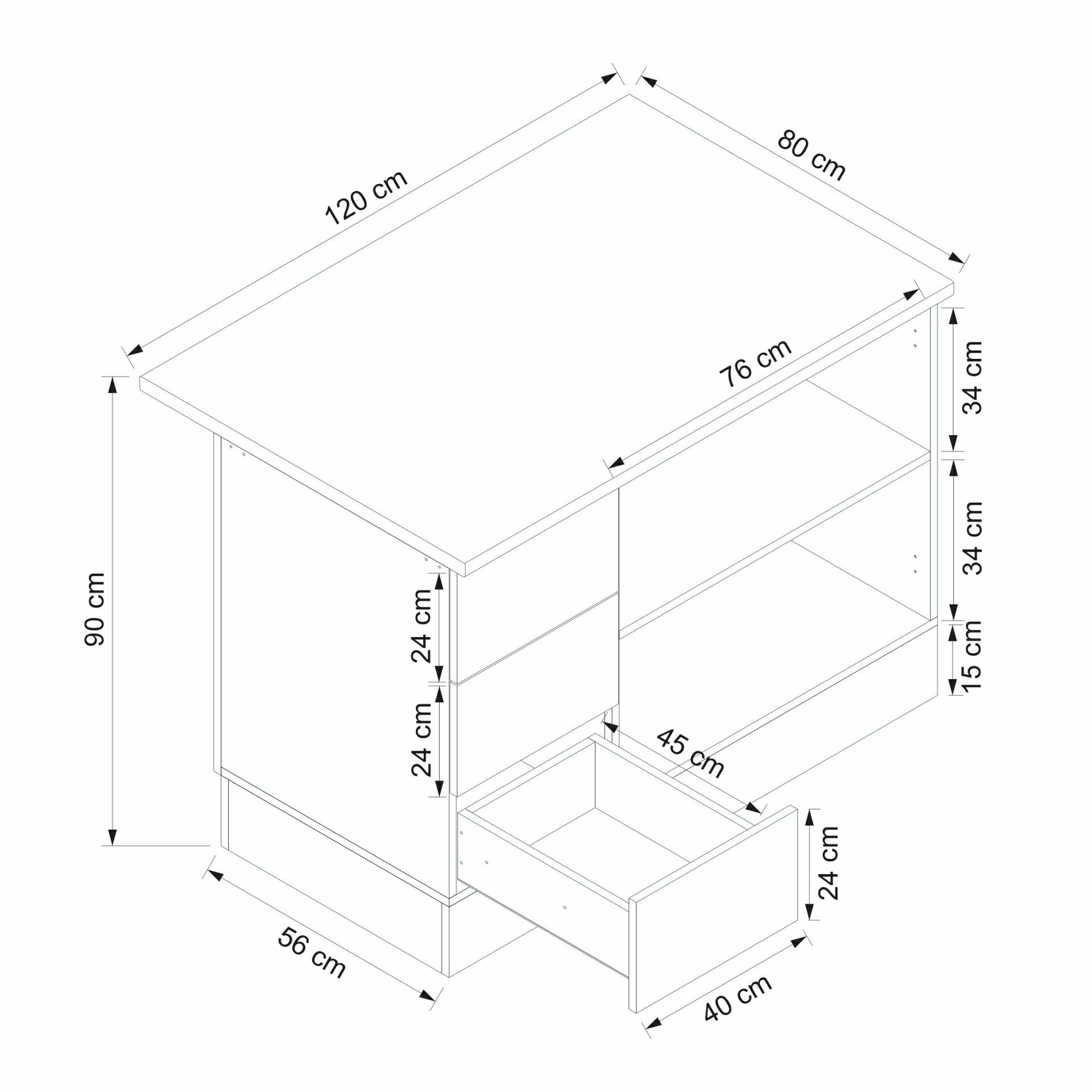 120 cm Genişlik: Orta ölçekli mutfaklar için ideal ölçü sunar.