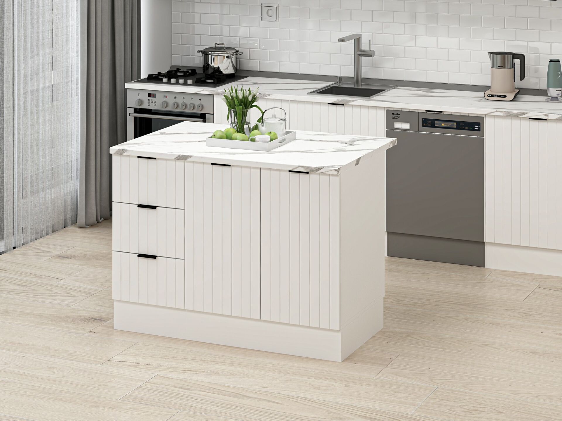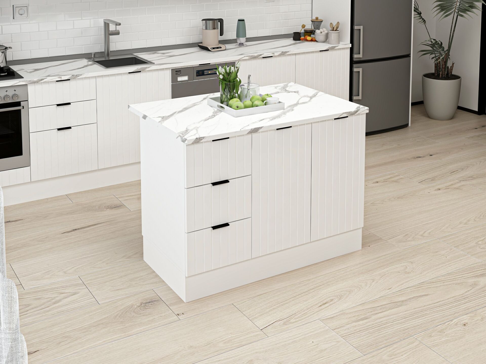 120 cm Genişlik: Orta ölçekli mutfaklar için ideal ölçü sunar.