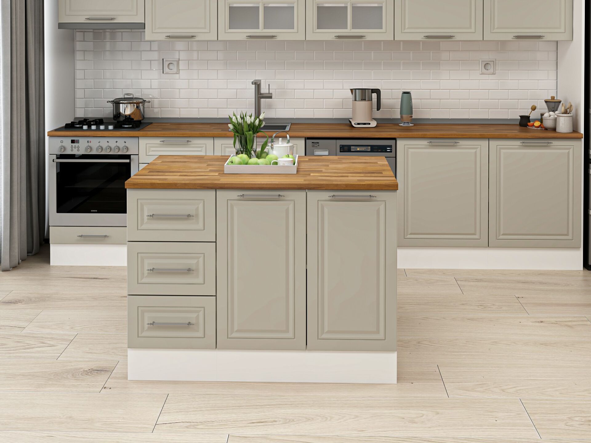 Alvinka 120 Cm Mbr_C Ada Mutfak Dolabı Beyaz Kumtaşı