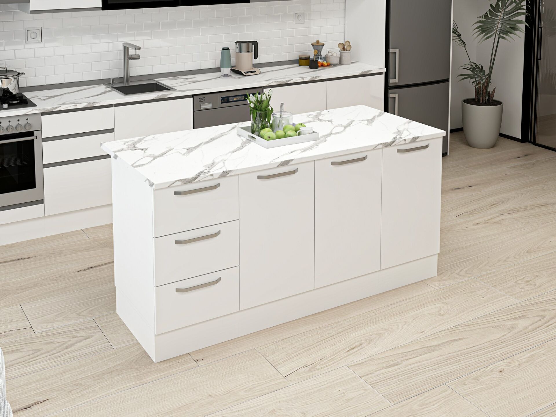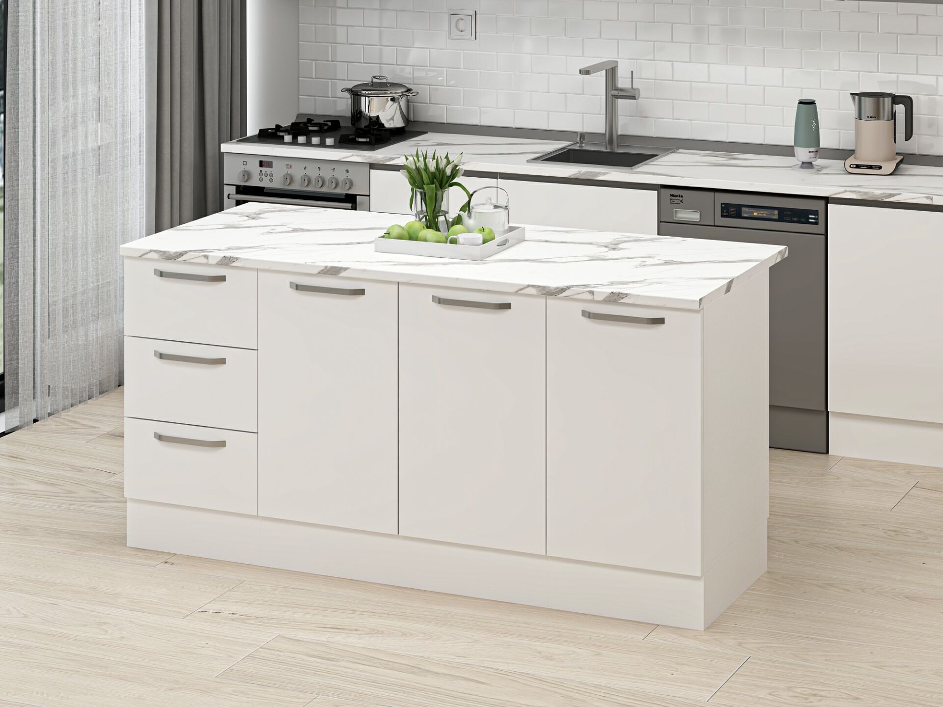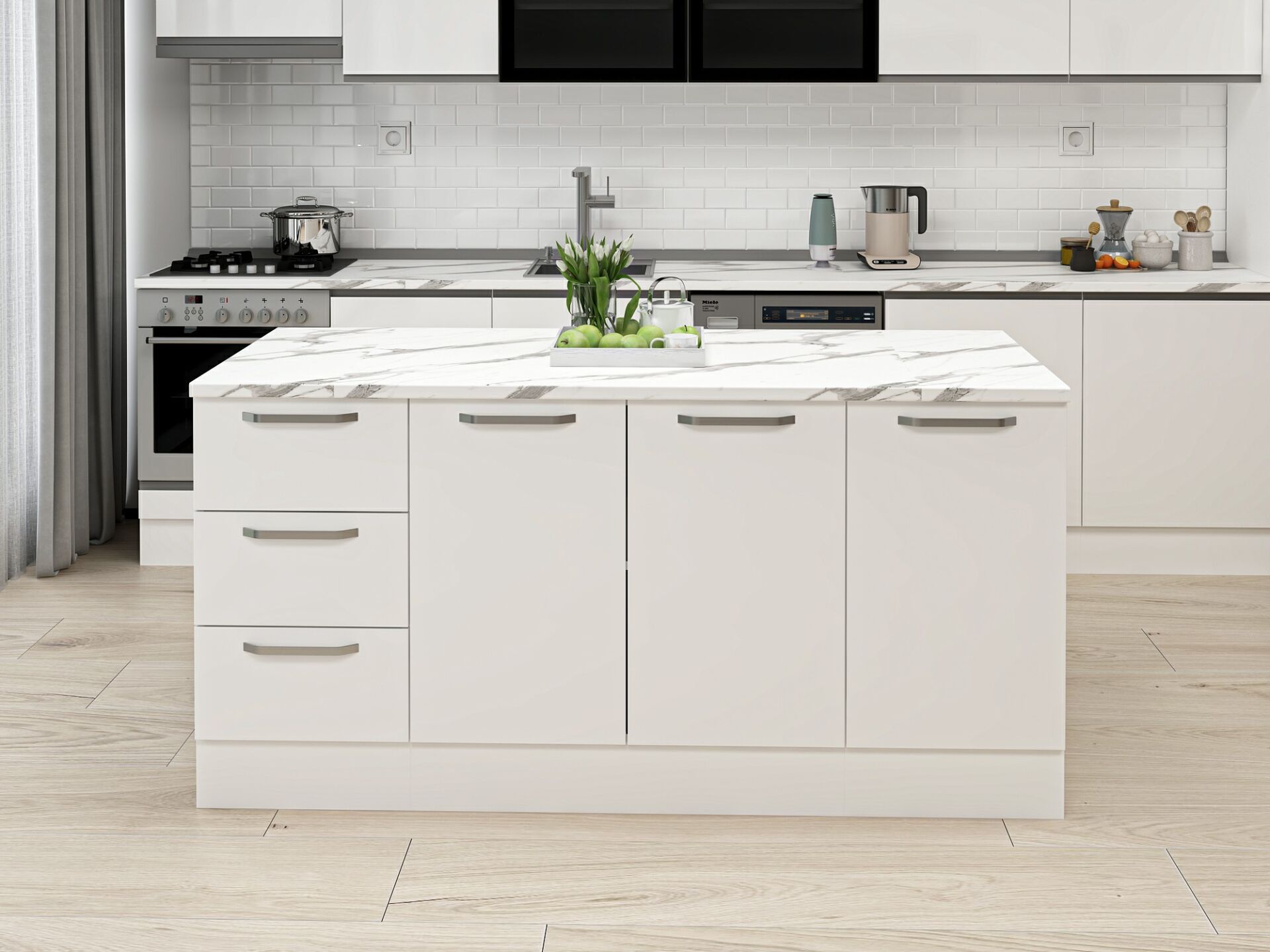 Alvinka 180 Cm Duz Ada Mutfak Dolabı Beyaz Beyaz