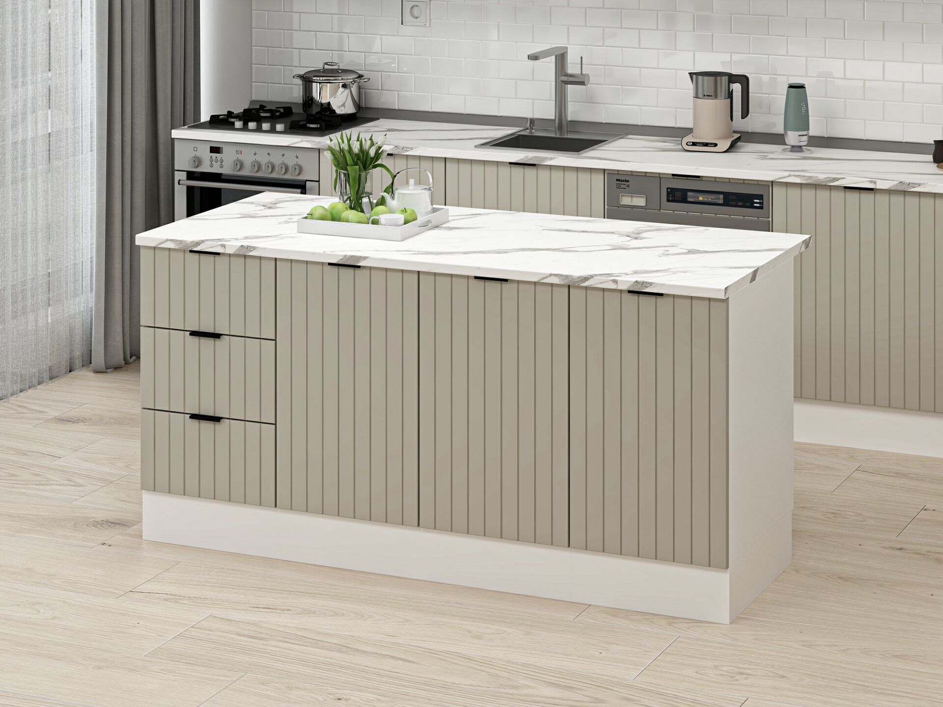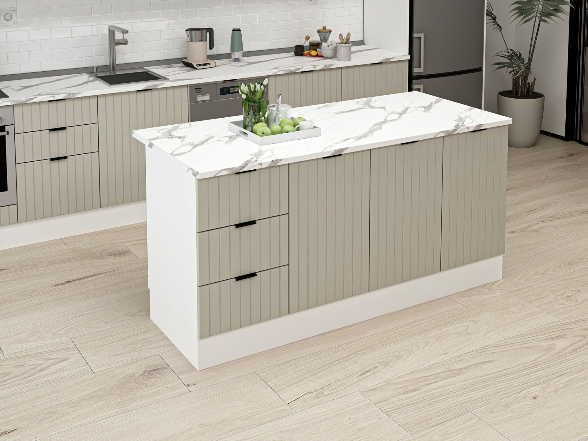 Alvinka 180 Cm Mbr_B Ada Mutfak Dolabı Beyaz Kumtaşı
