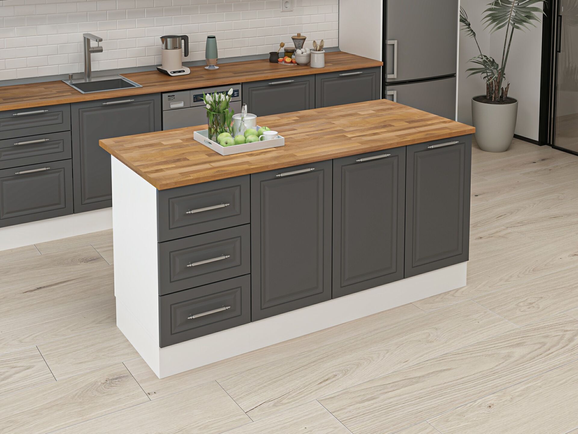 Alvinka 180 Cm Mbr_C Ada Mutfak Dolabı Beyaz Antrasit