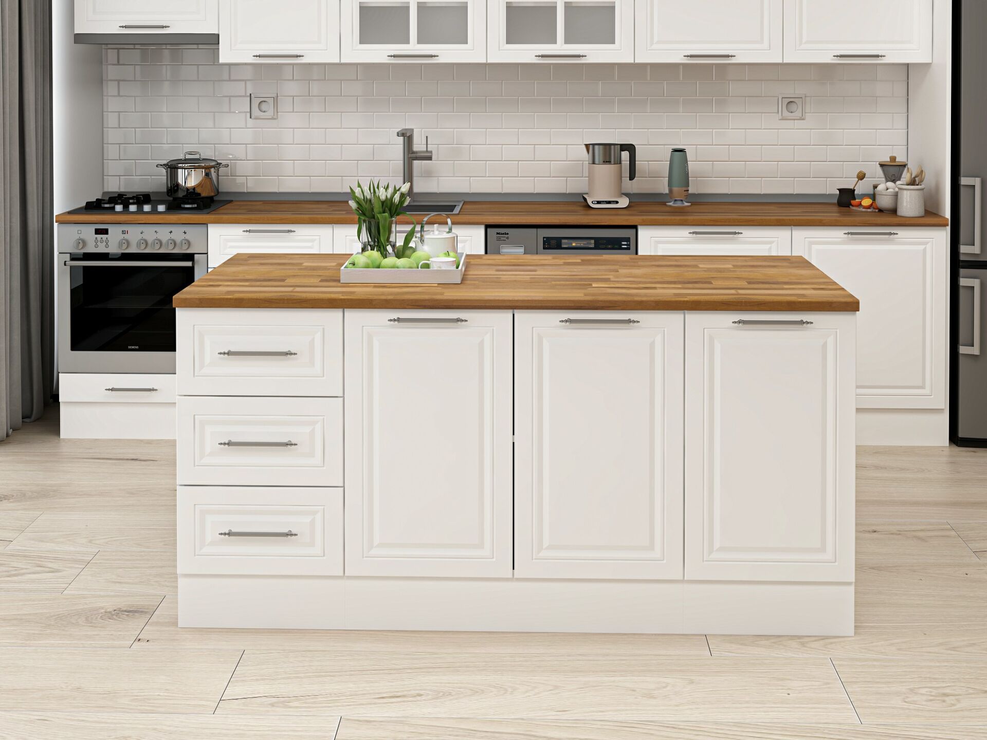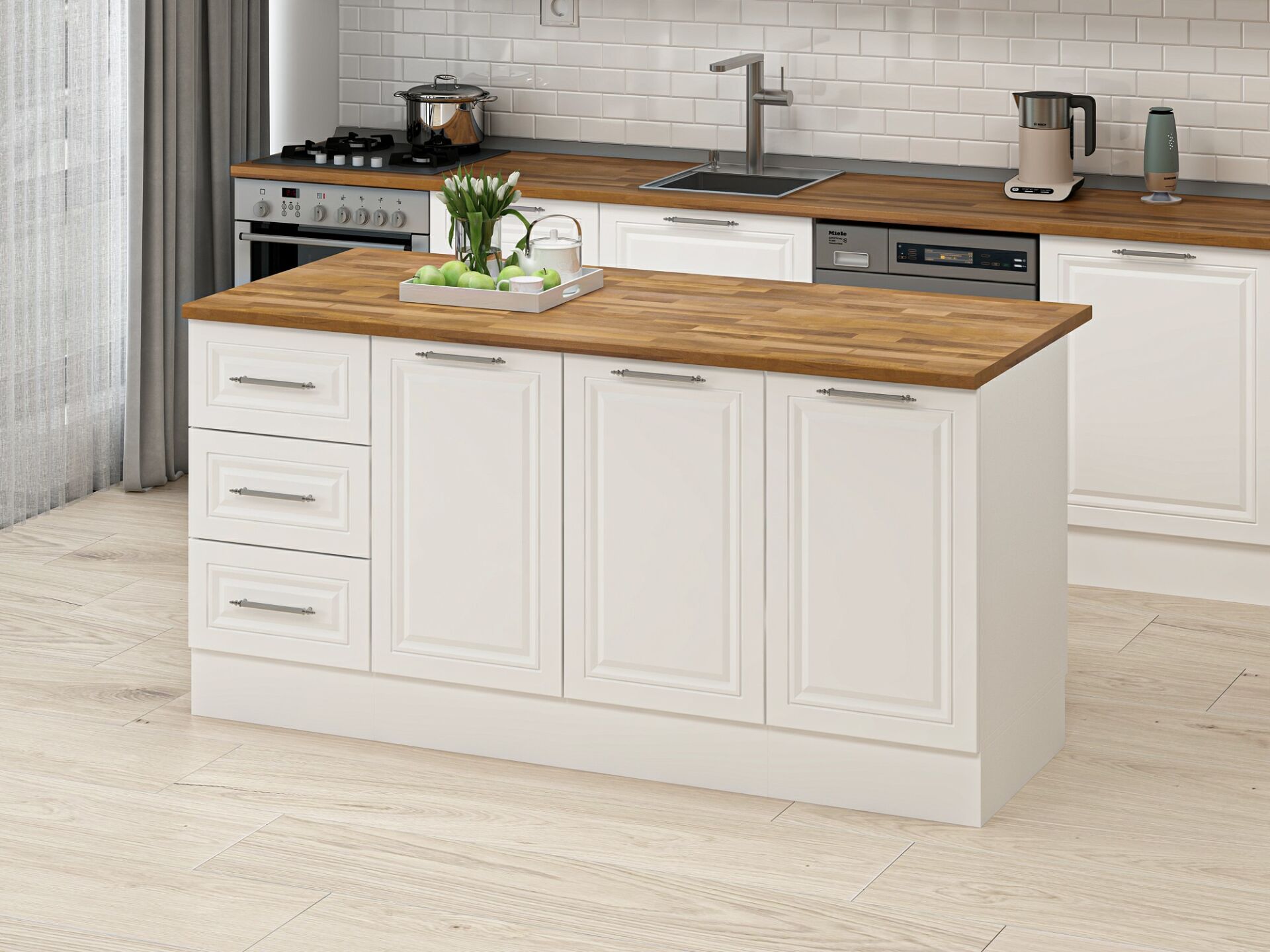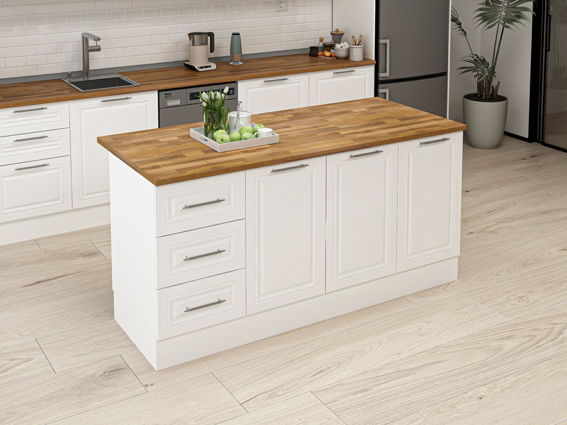 Alvinka 180 Cm Mbr_C Ada Mutfak Dolabı Beyaz Beyaz