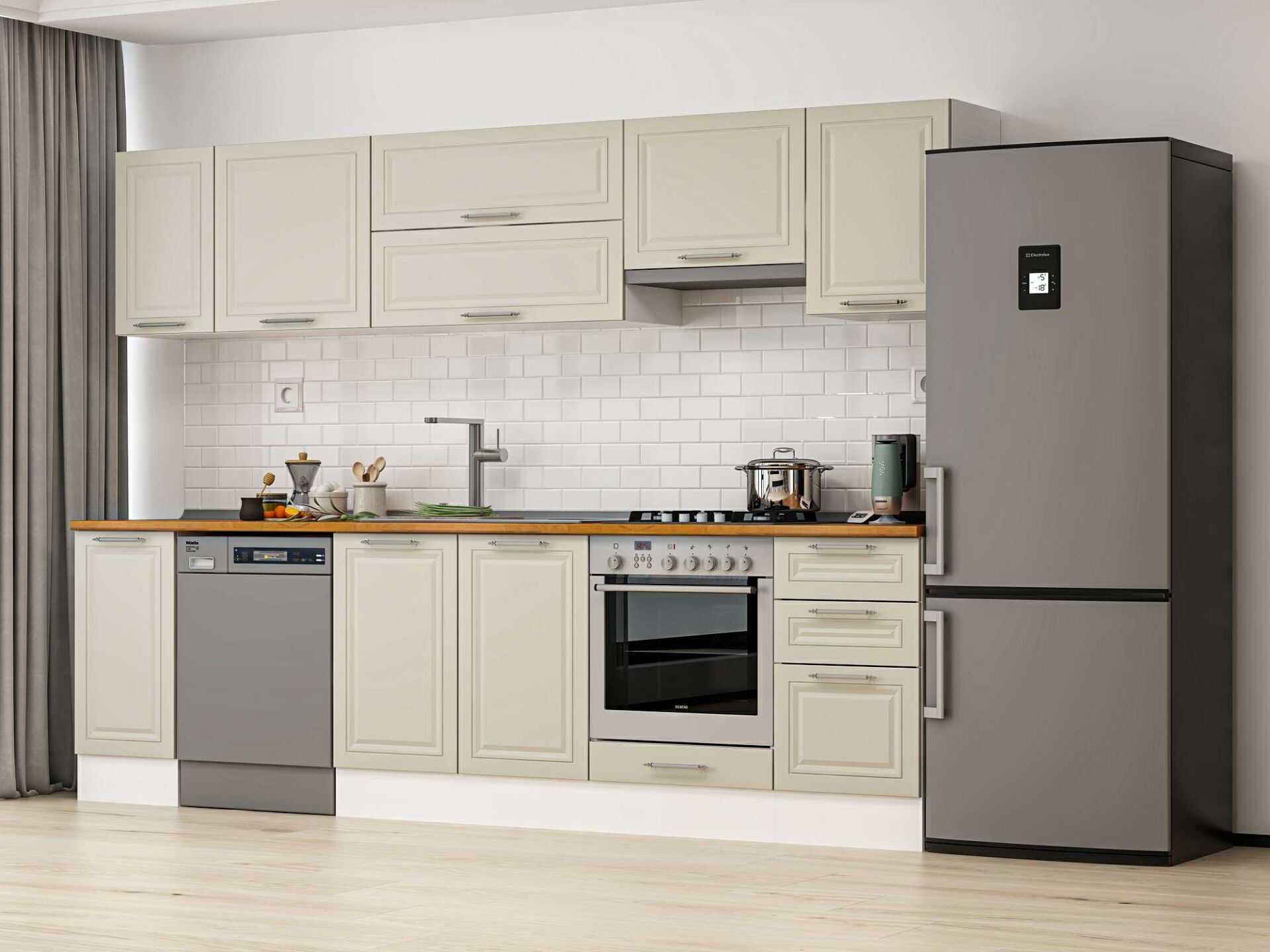 Alvinka 285X210 Cm Klasik Mebran Mutfak Dolabı Beyaz Beyaz M-E80S40S45-1