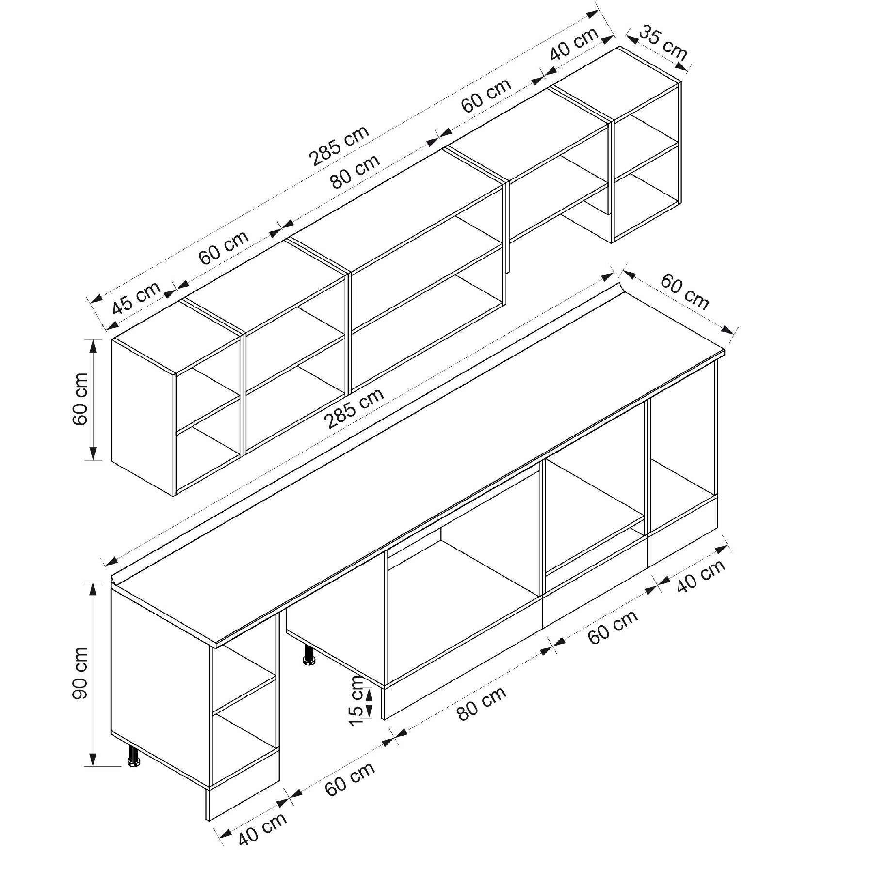 Alvinka 285X210 Cm Klasik Mebran Mutfak Dolabı Beyaz Beyaz M-E80S45S40-1