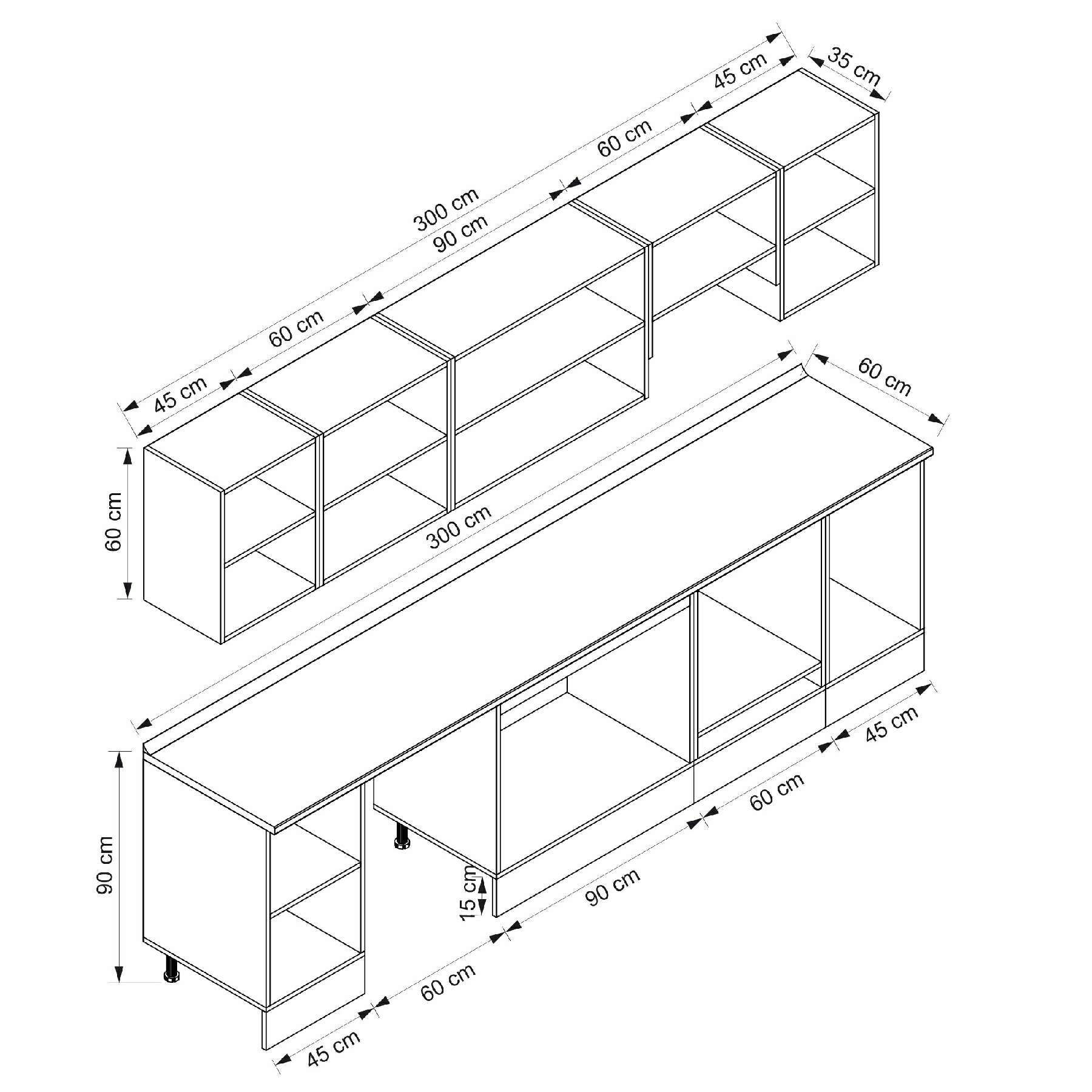 Alvinka 300X210 Cm High Gloss Mutfak Dolabı M-E90S45S45-1 High Gloss | Antrasit - Suntalam