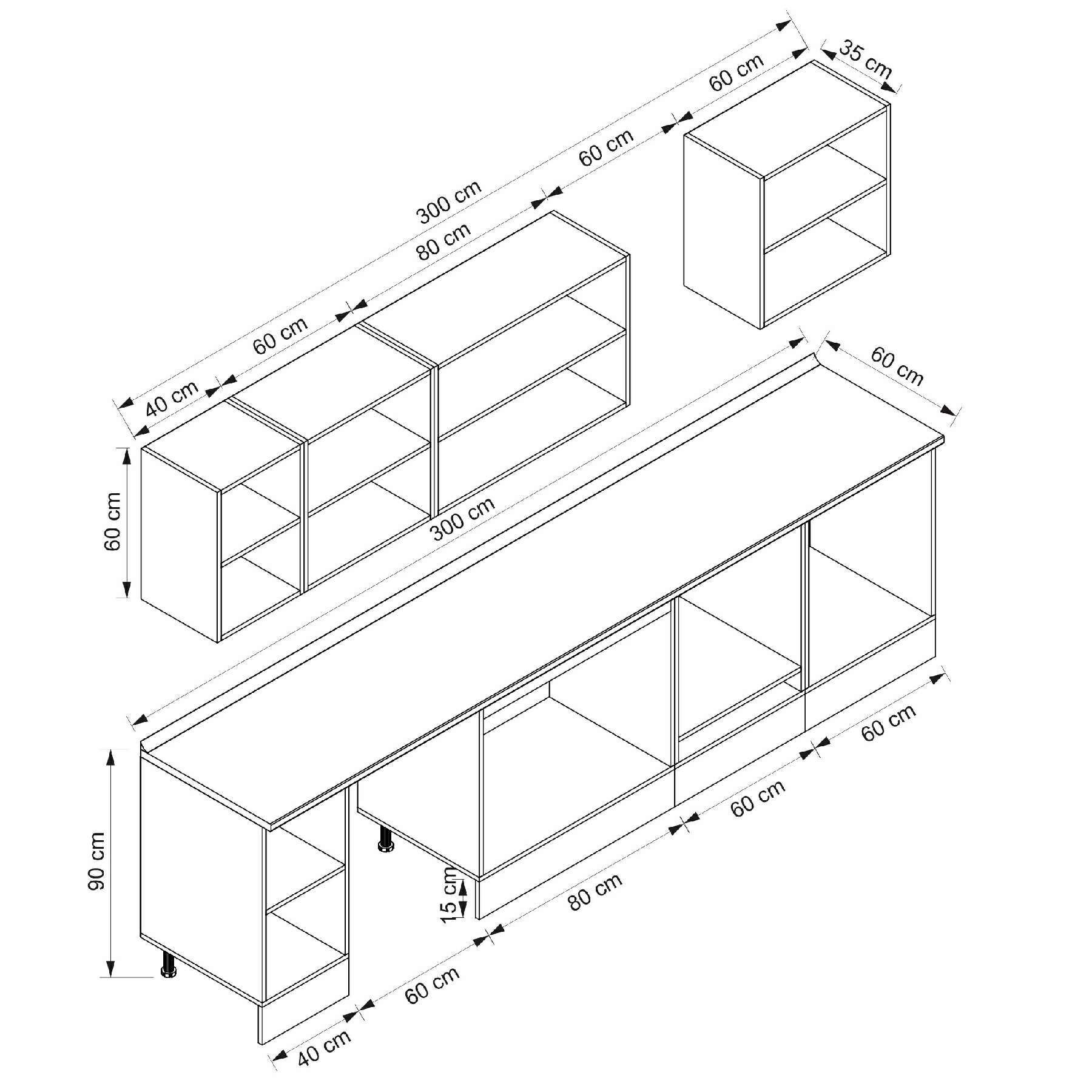 Alvinka 300X210 Cm Klasik Mebran Mutfak Dolabı Beyaz Beyaz M-E80S40S60-3