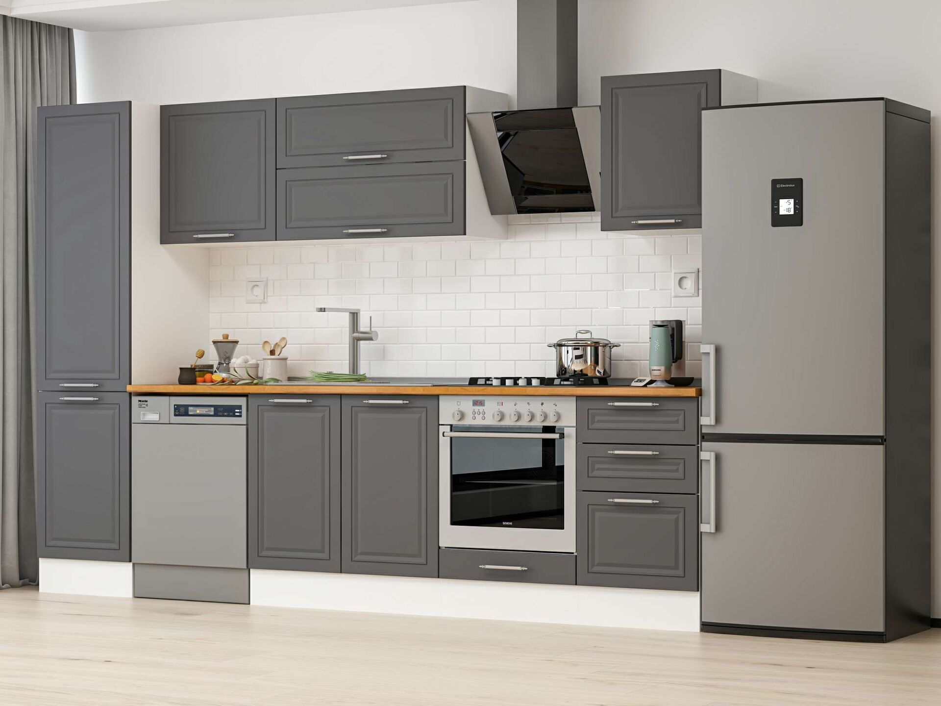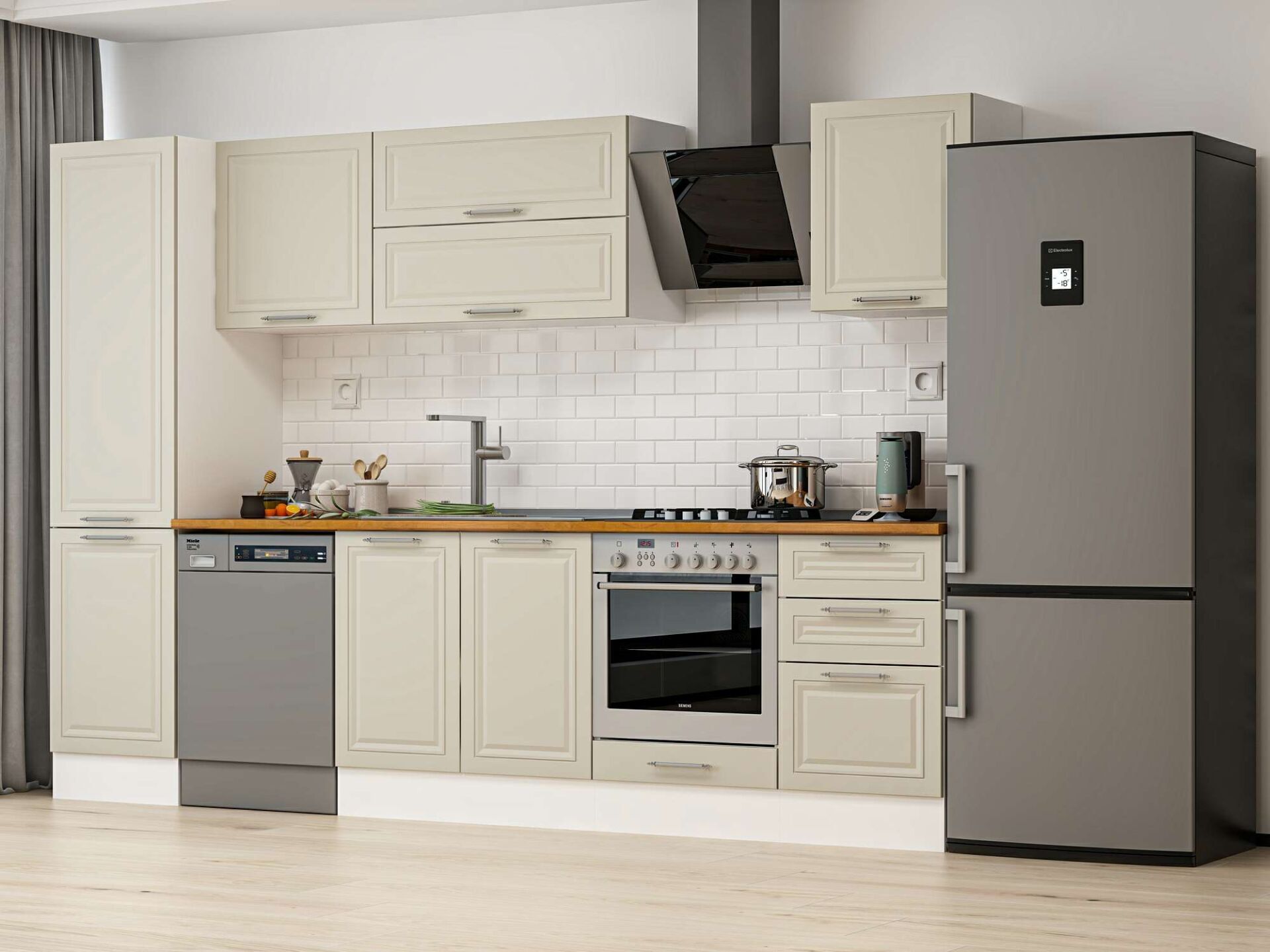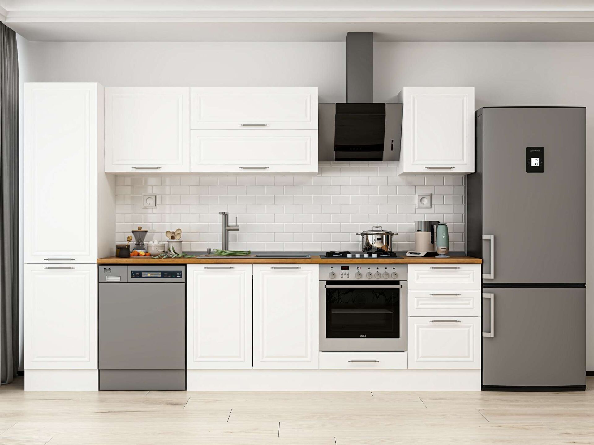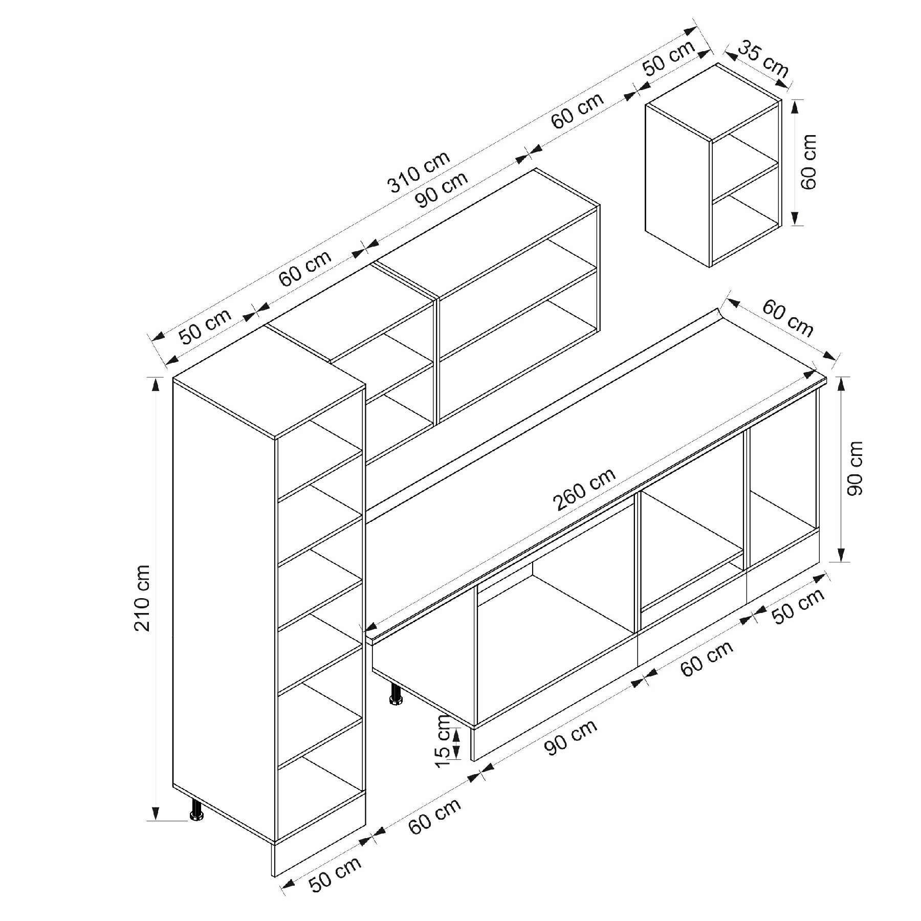 Alvinka 310X210 Cm Klasik Mebran Mutfak Dolabı Beyaz Beyaz Mb-E90B50S50-2