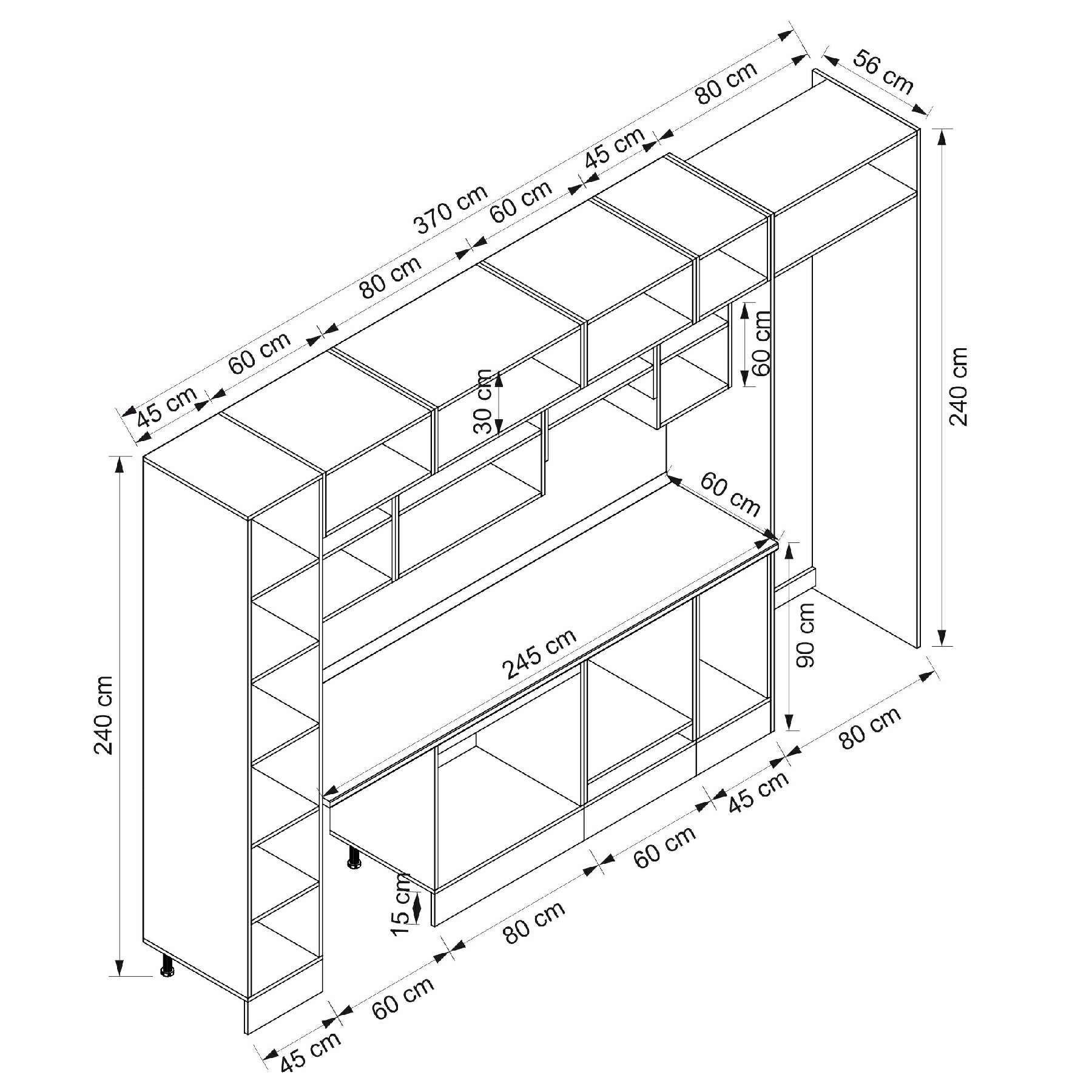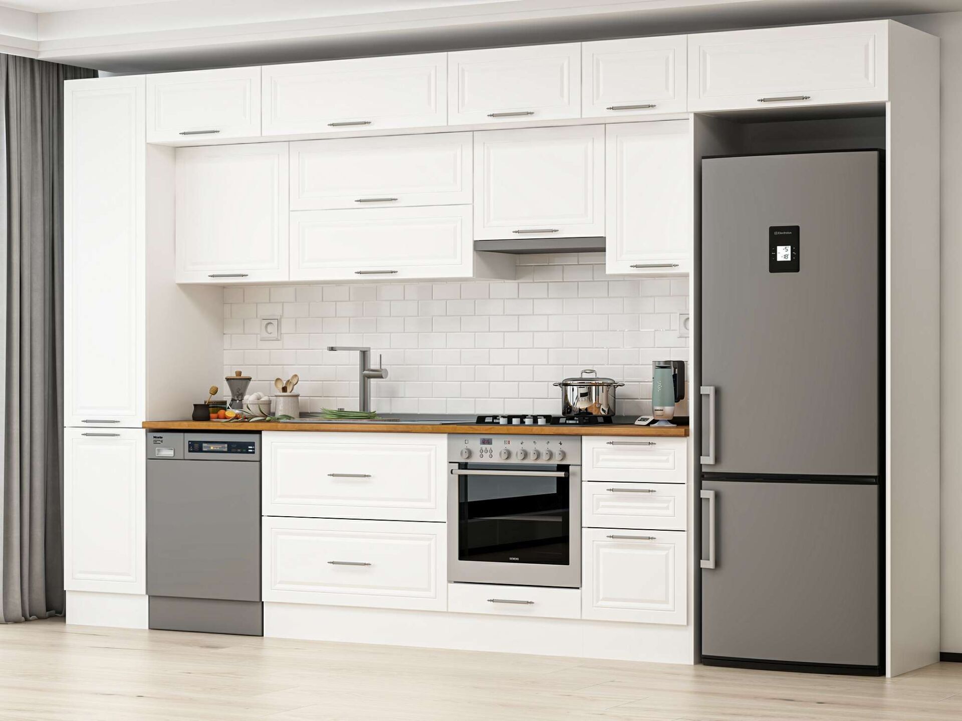 Alvinka 370X240 Cm Klasik Mebran Mutfak Dolabı Beyaz Beyaz Mbb-E80B45S45-1