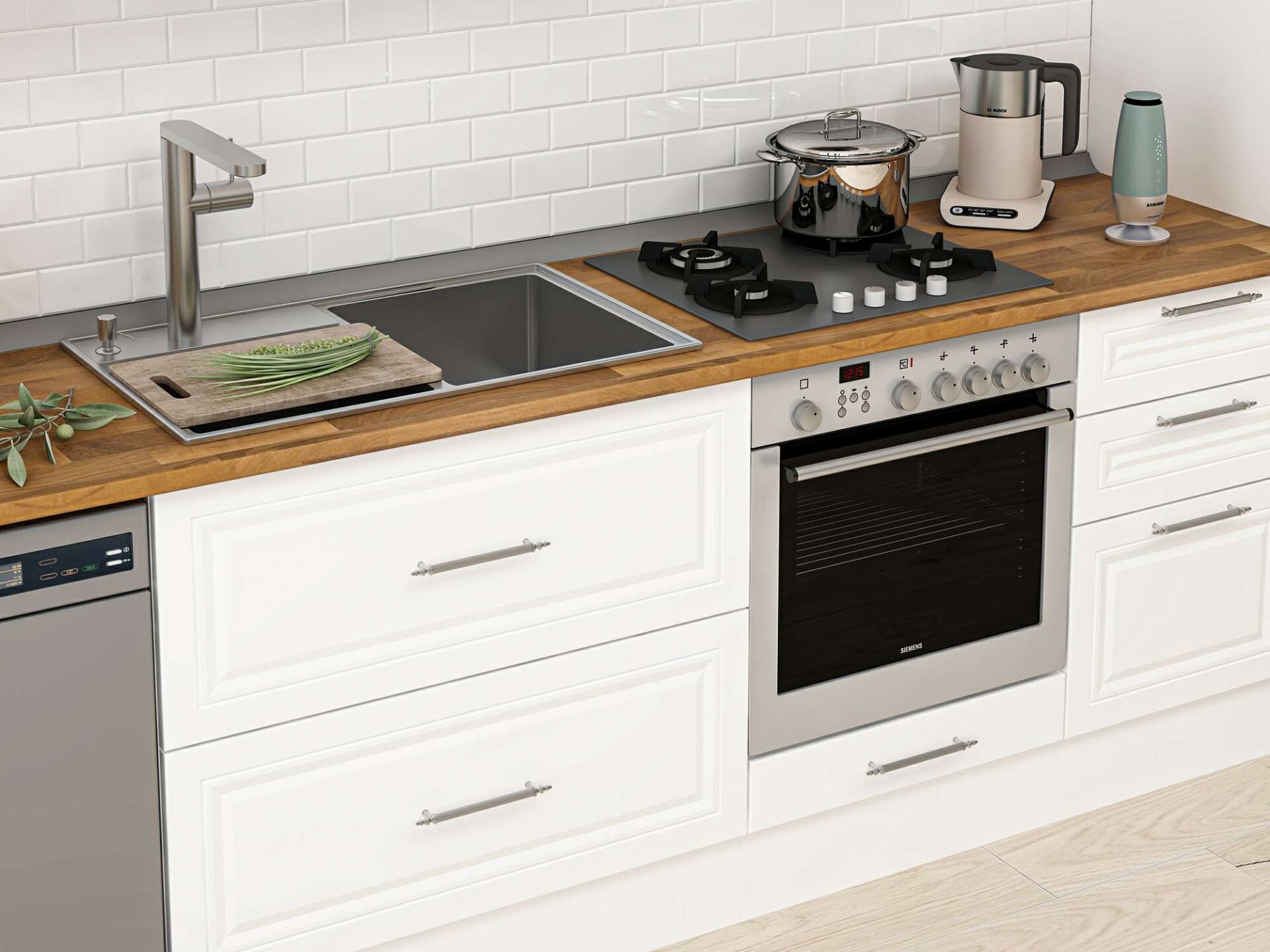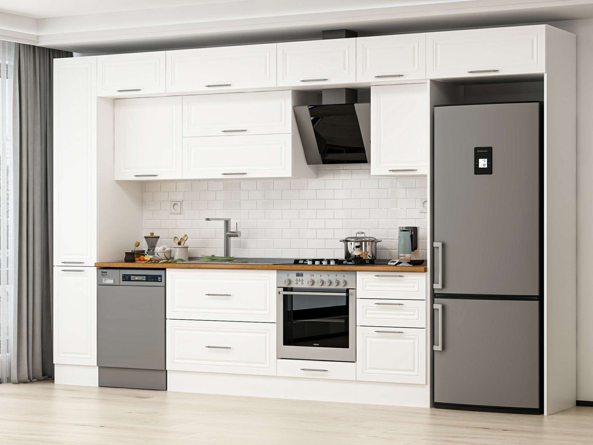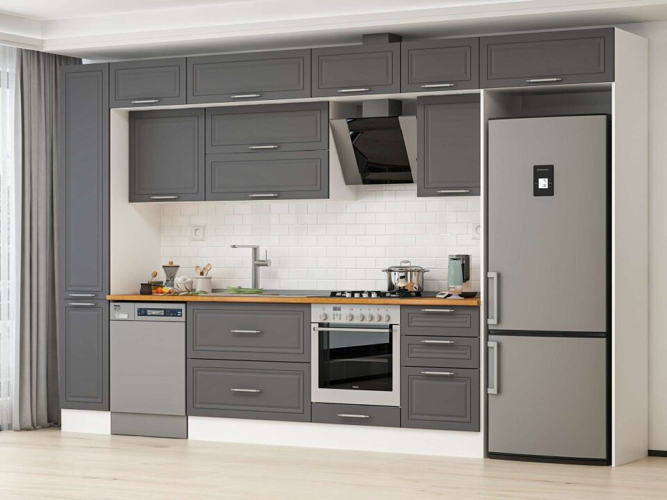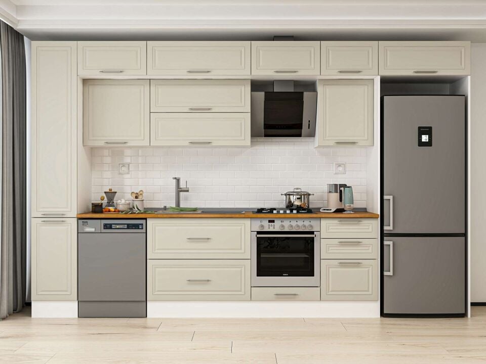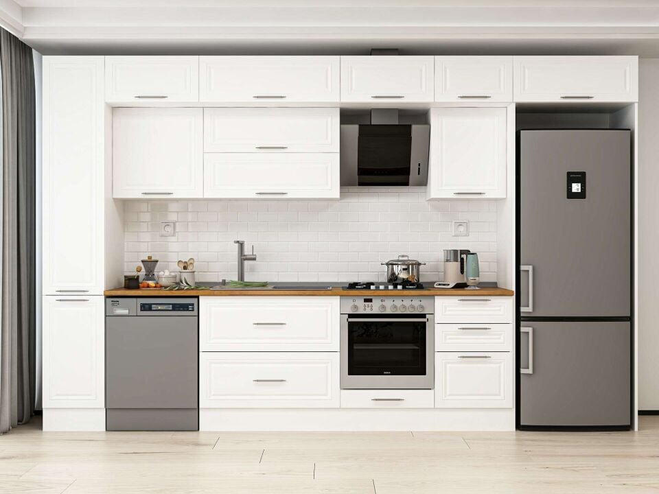 Alvinka 380X240 Cm Klasik Mebran Mutfak Dolabı Beyaz Beyaz Mbb-E90B40S50-2