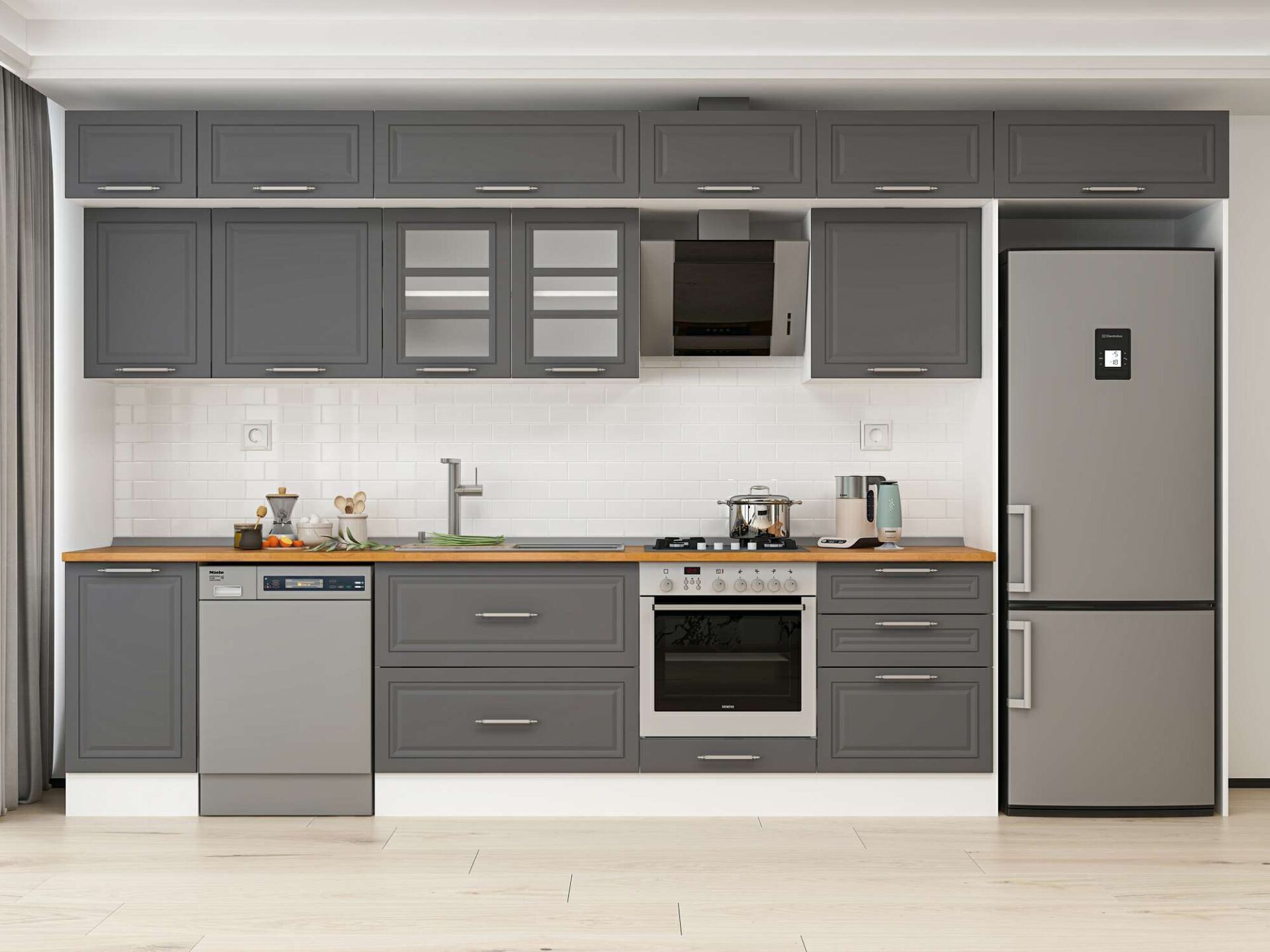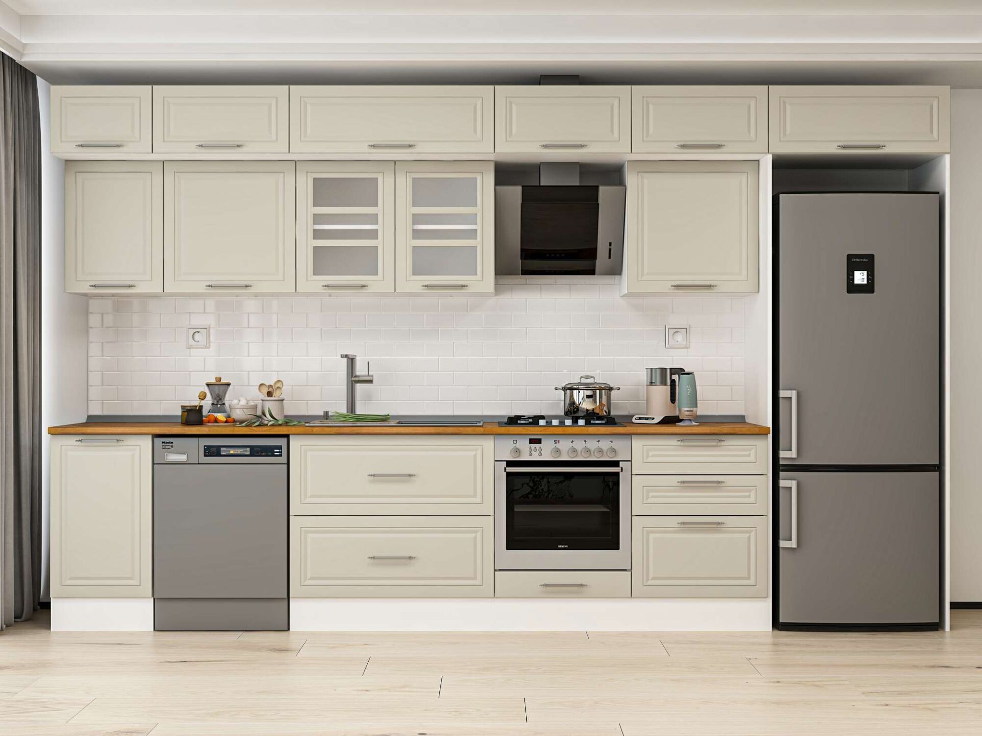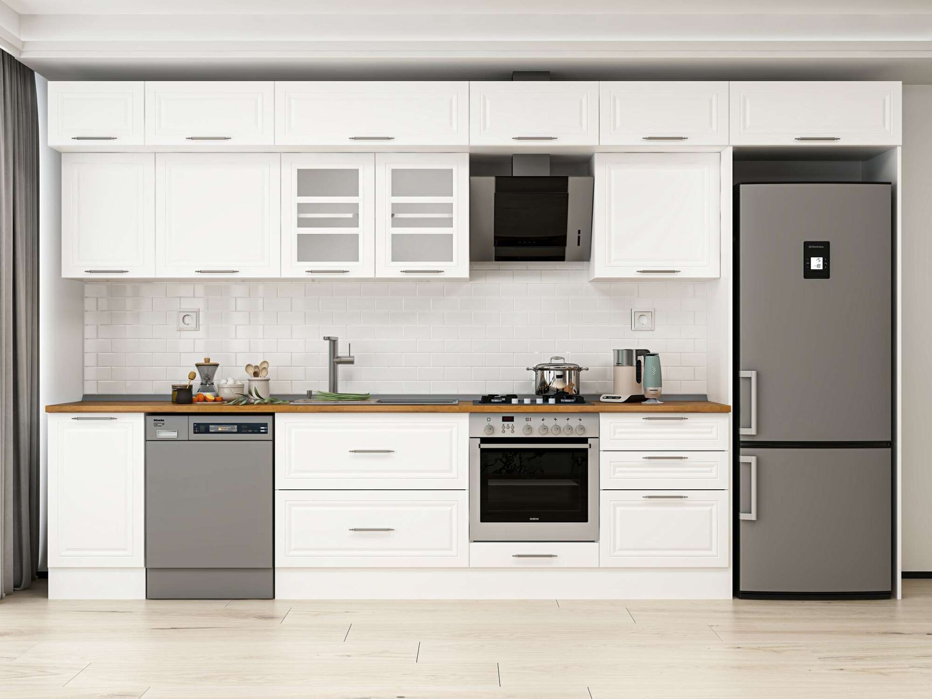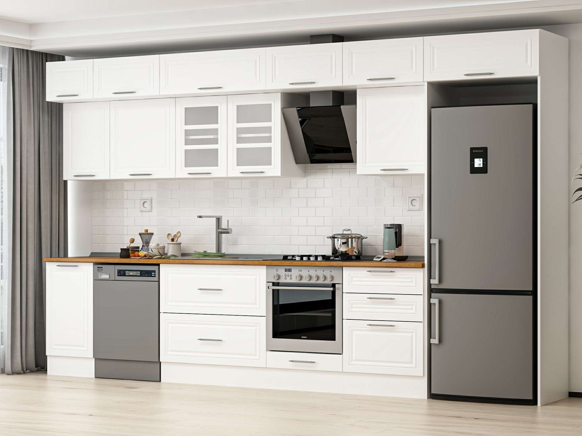 Alvinka 395X240 Cm Klasik Mebran Mutfak Dolabı Beyaz Beyaz Mb-E90S45S60-3