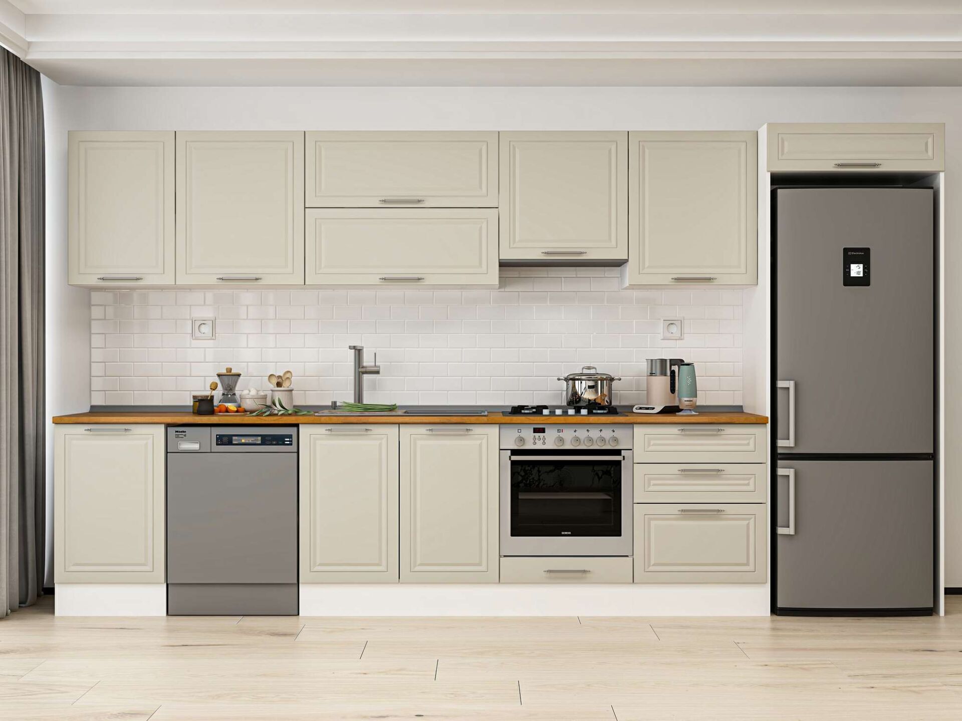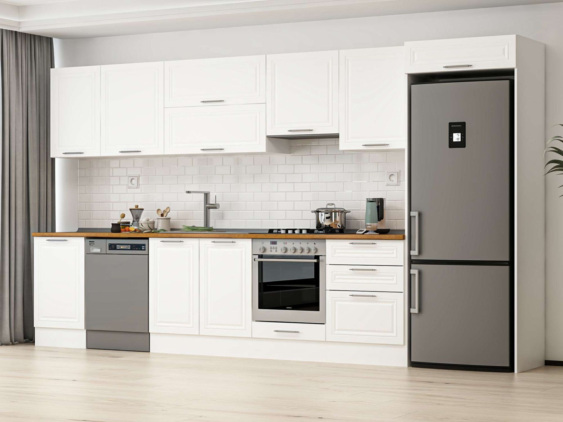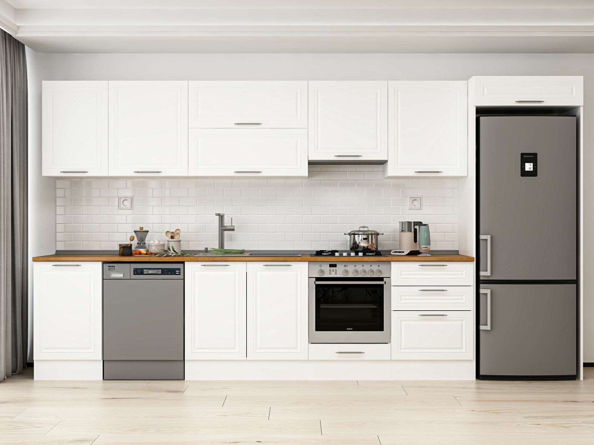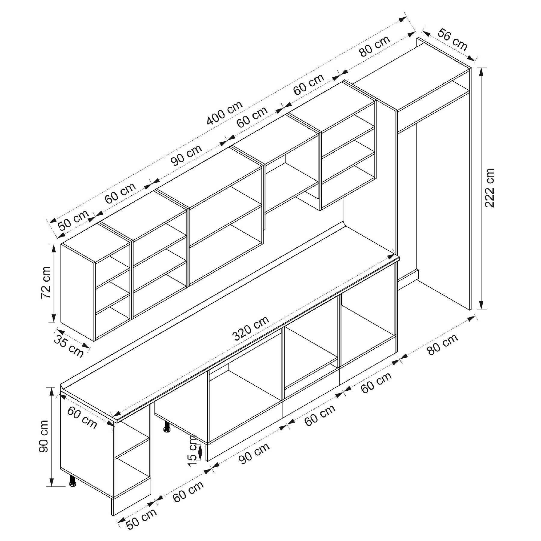 Alvinka 400X222 Cm Klasik Mebran Mutfak Dolabı Beyaz Beyaz Mb-E90S50S60-1