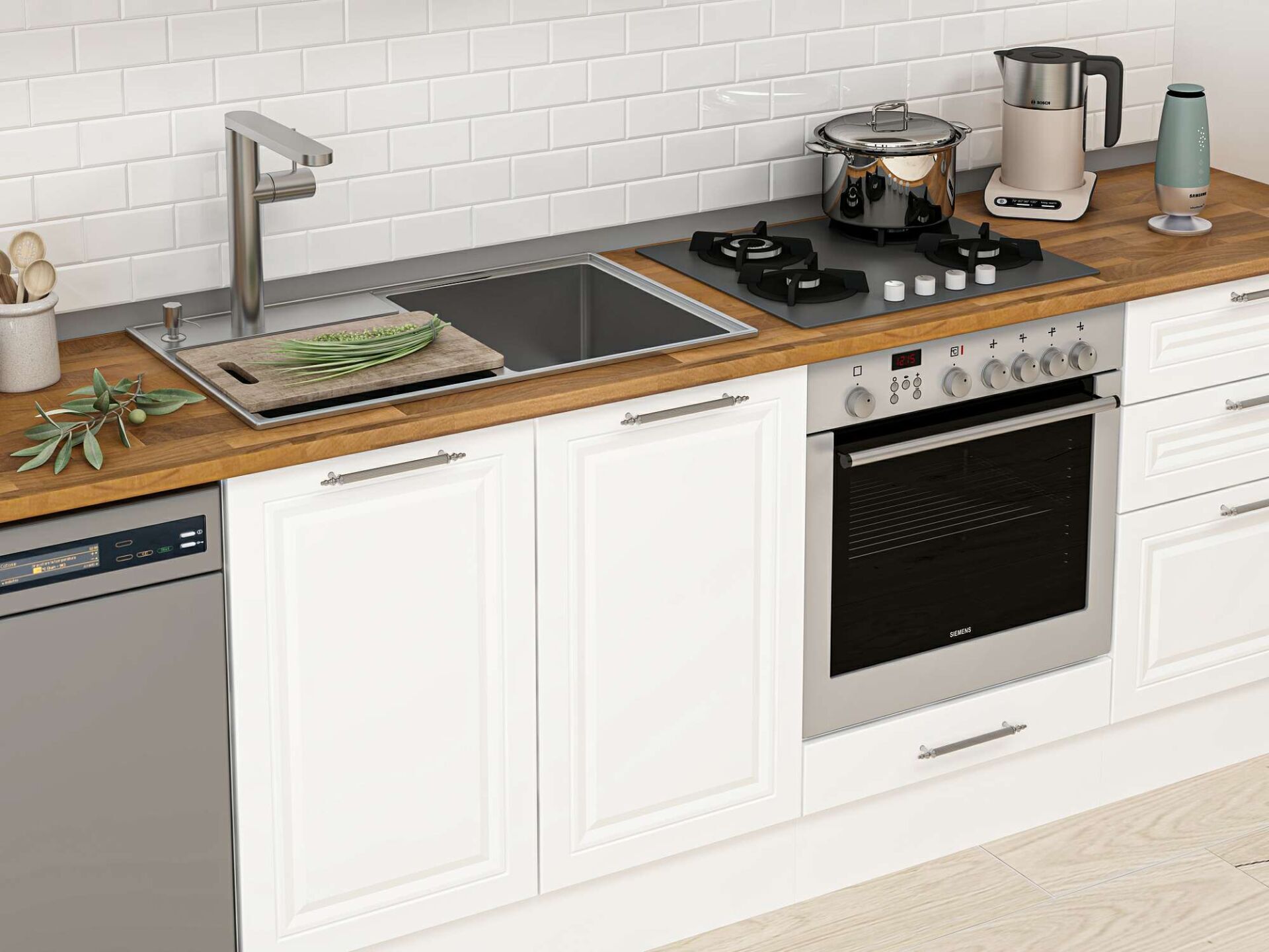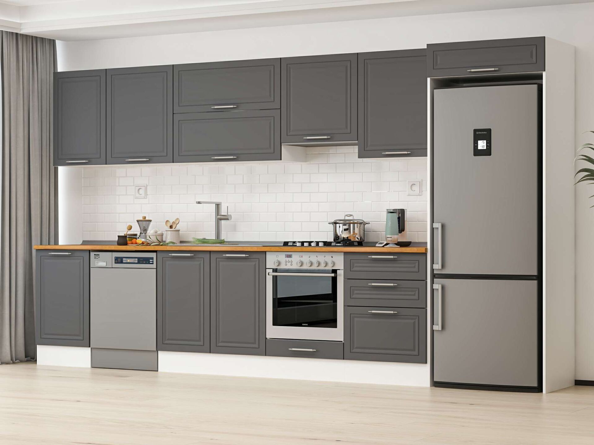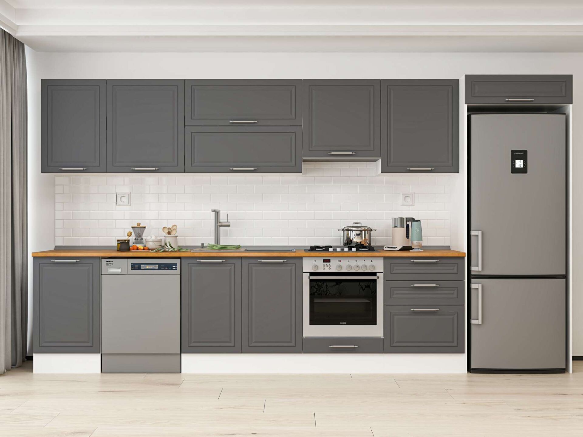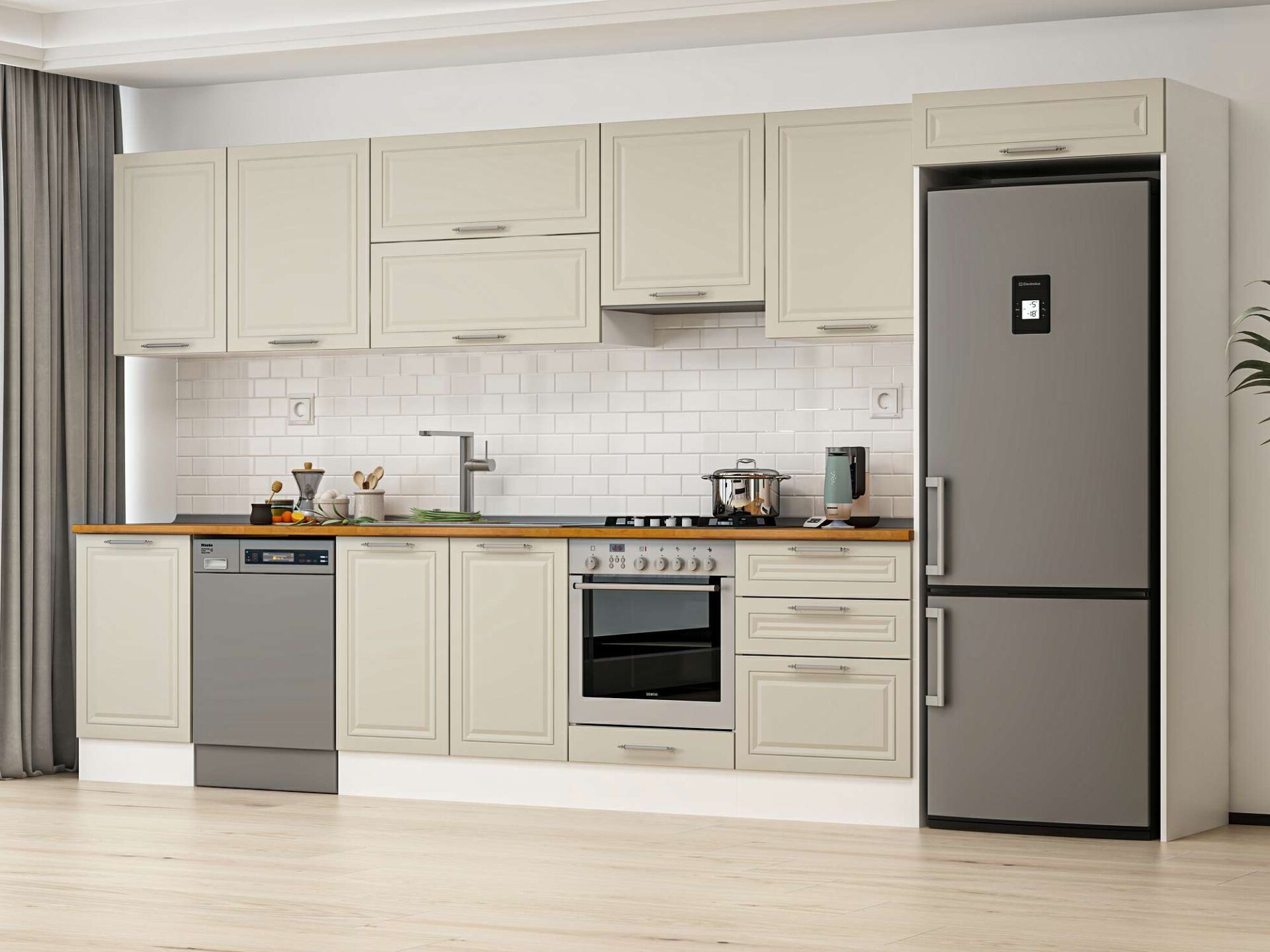 Alvinka 400X222 Cm Klasik Mebran Mutfak Dolabı Beyaz Beyaz Mb-E90S50S60-1