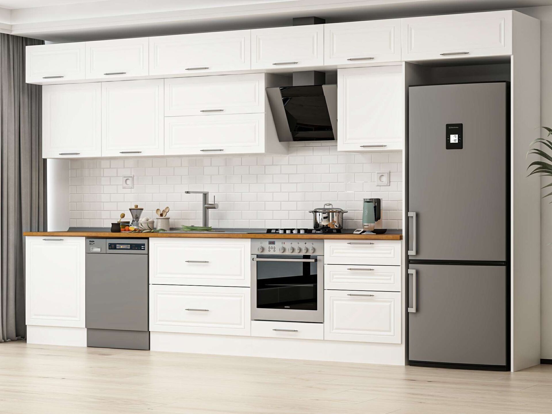 Alvinka 410X240 Cm Klasik Mebran Mutfak Dolabı Beyaz Beyaz Mb-E90S60S60-2