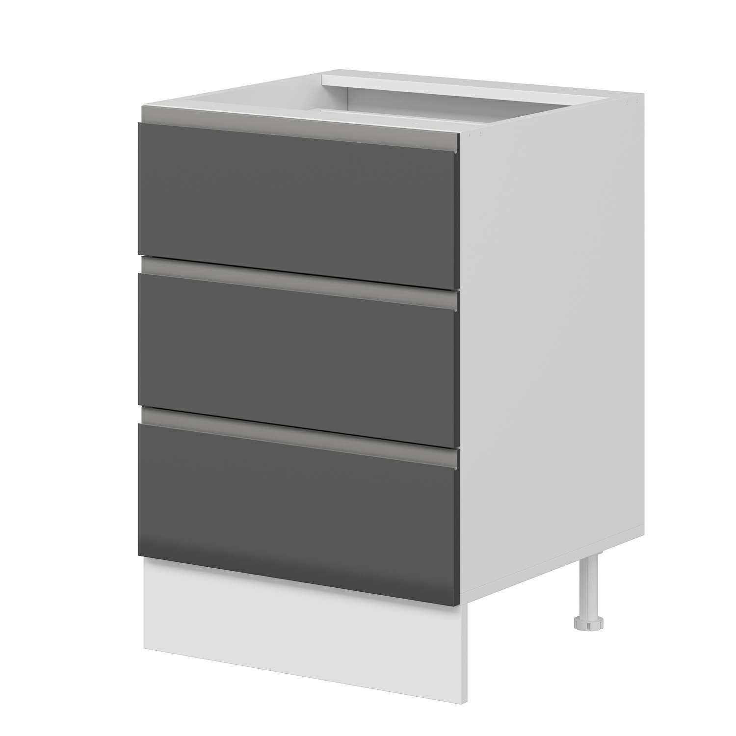 Alvinka Mutfak Modül Hg_J Alt 3Ç 60Cm Dolap Beyaz Antrasit
