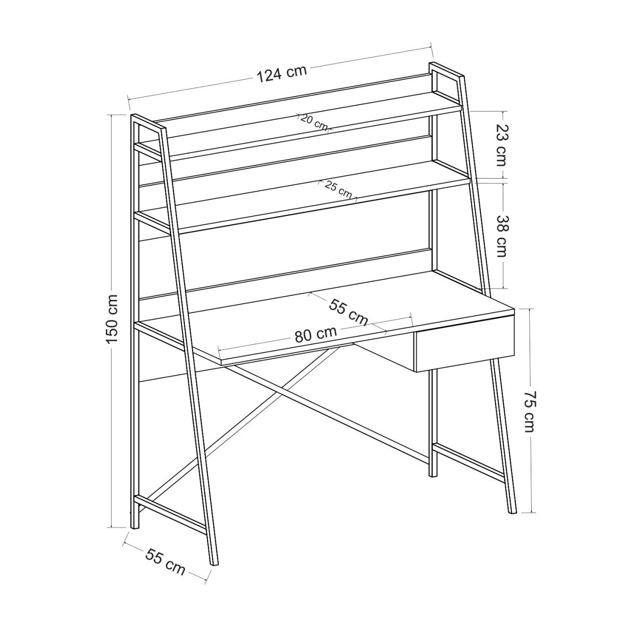 Arte Metal Ayaklı Çalışma Masası – Kaman Ceviz/Mat Siyah, modern ve dayanıklı tasarımıyla çalışma alanlarınıza şıklık ve verimli kullanım kazandırır. Tek çekmecesi, küçük ofis malzemelerinizi ve kişisel eşyalarınızı düzenli şekilde saklamanıza imkân tanır. Üst kısmında dolabın üzerinde yer alan 2 katlı rafları ile kitap, dosya ve dekoratif eşyalarınızı düzenli şekilde yerleştirebilirsiniz. Monitör rafı bulunmamaktadır.