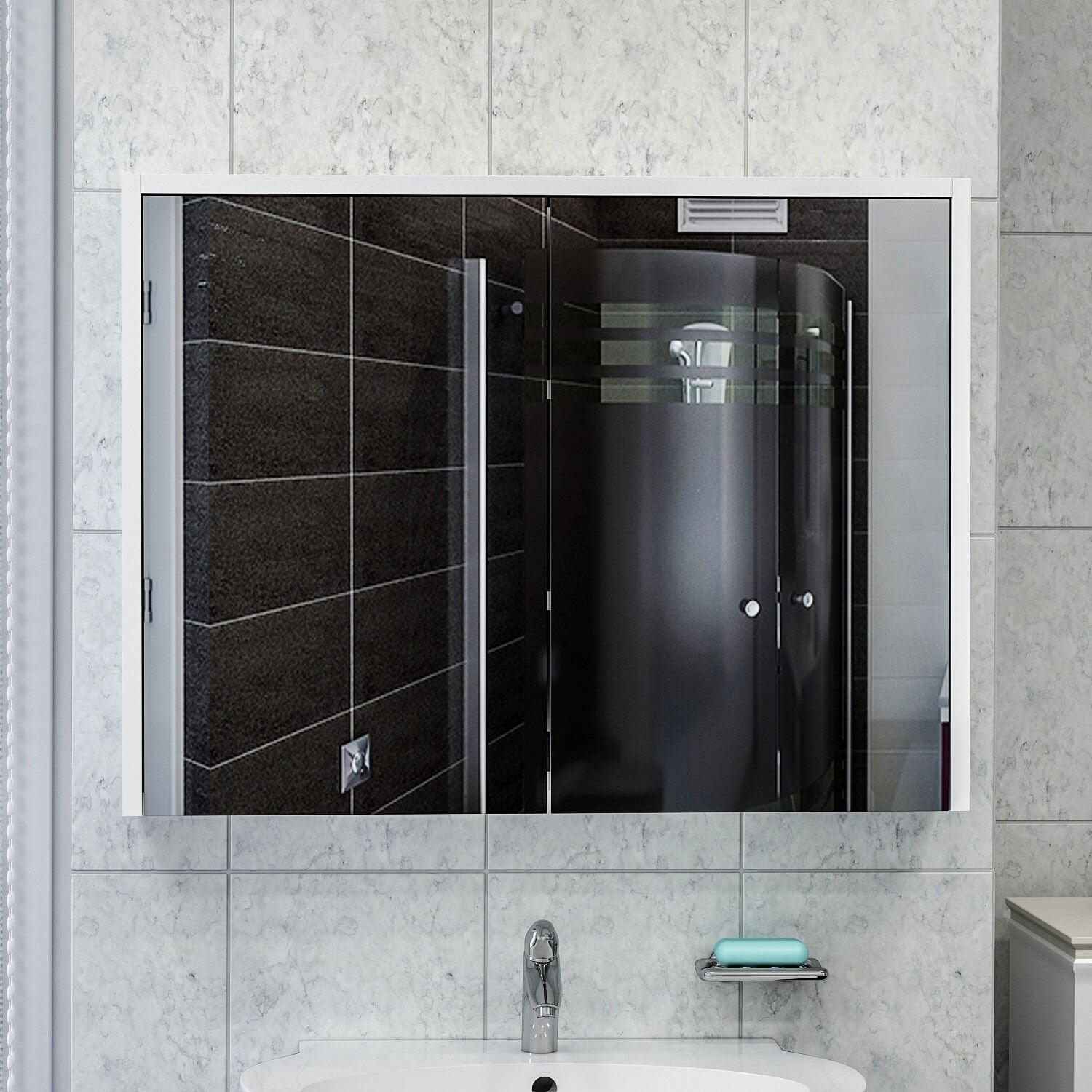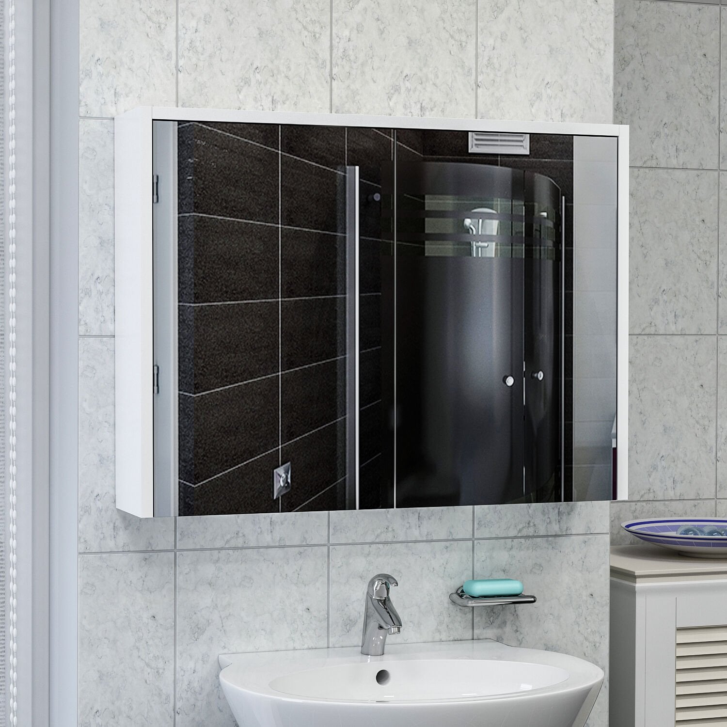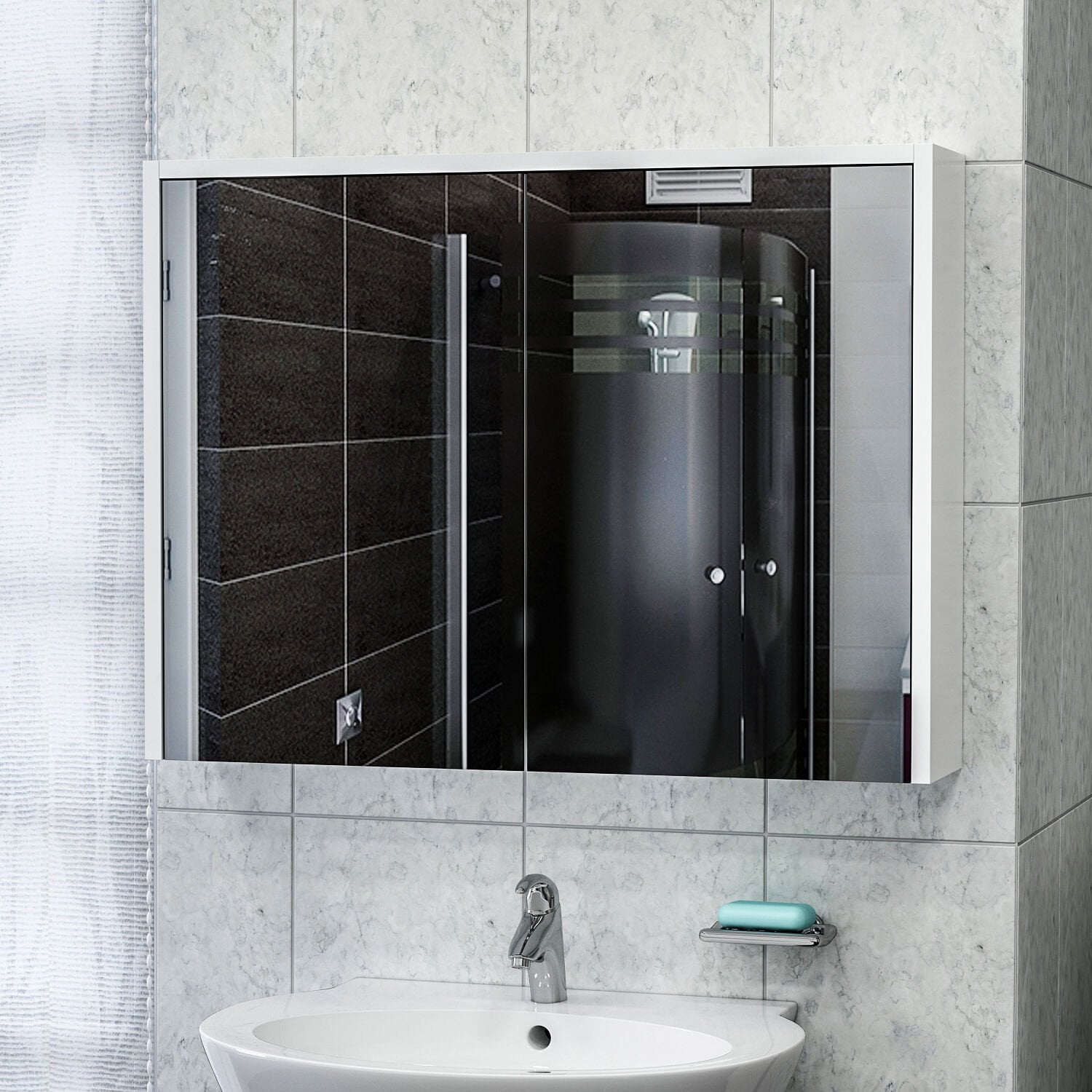 Bade Asma 80 Cm Aynalı Banyo Dolabı - Beyaz