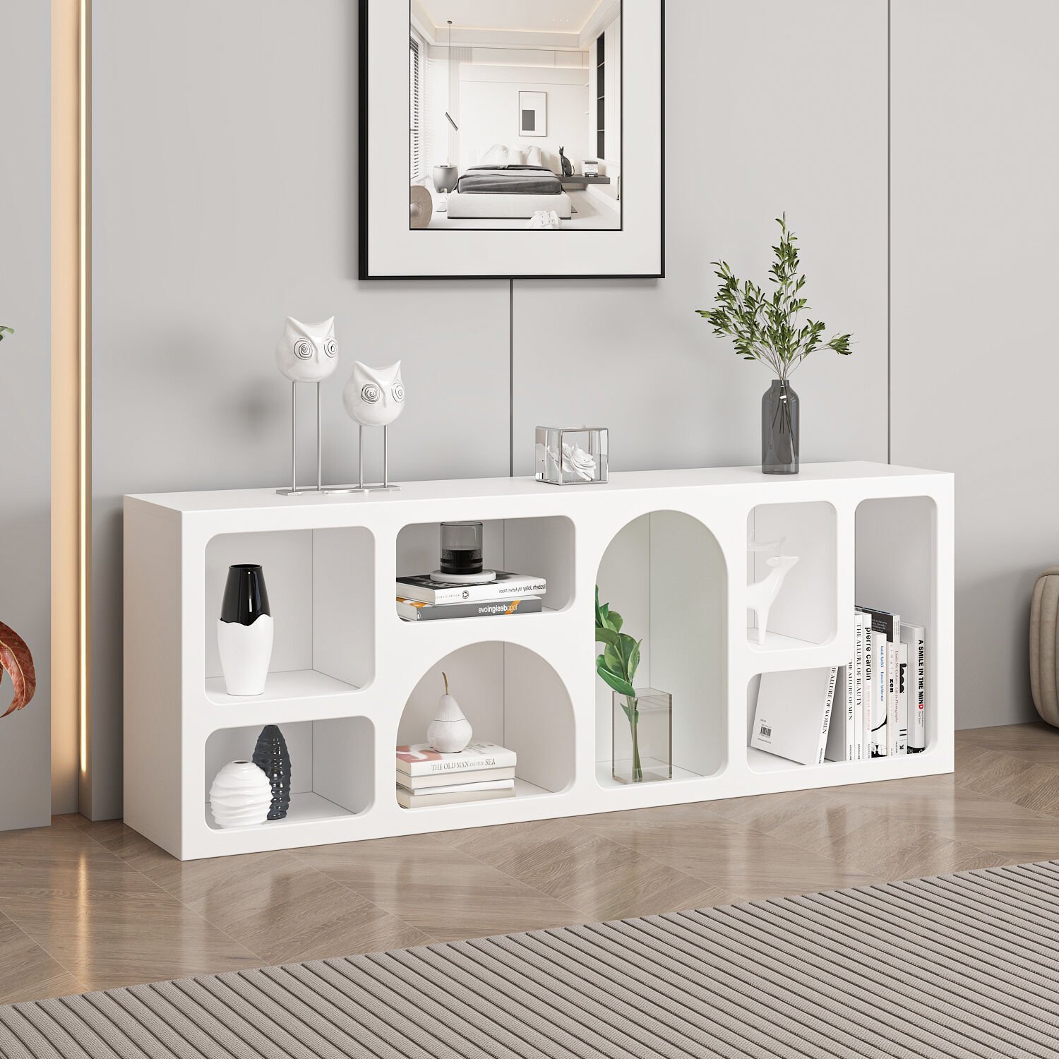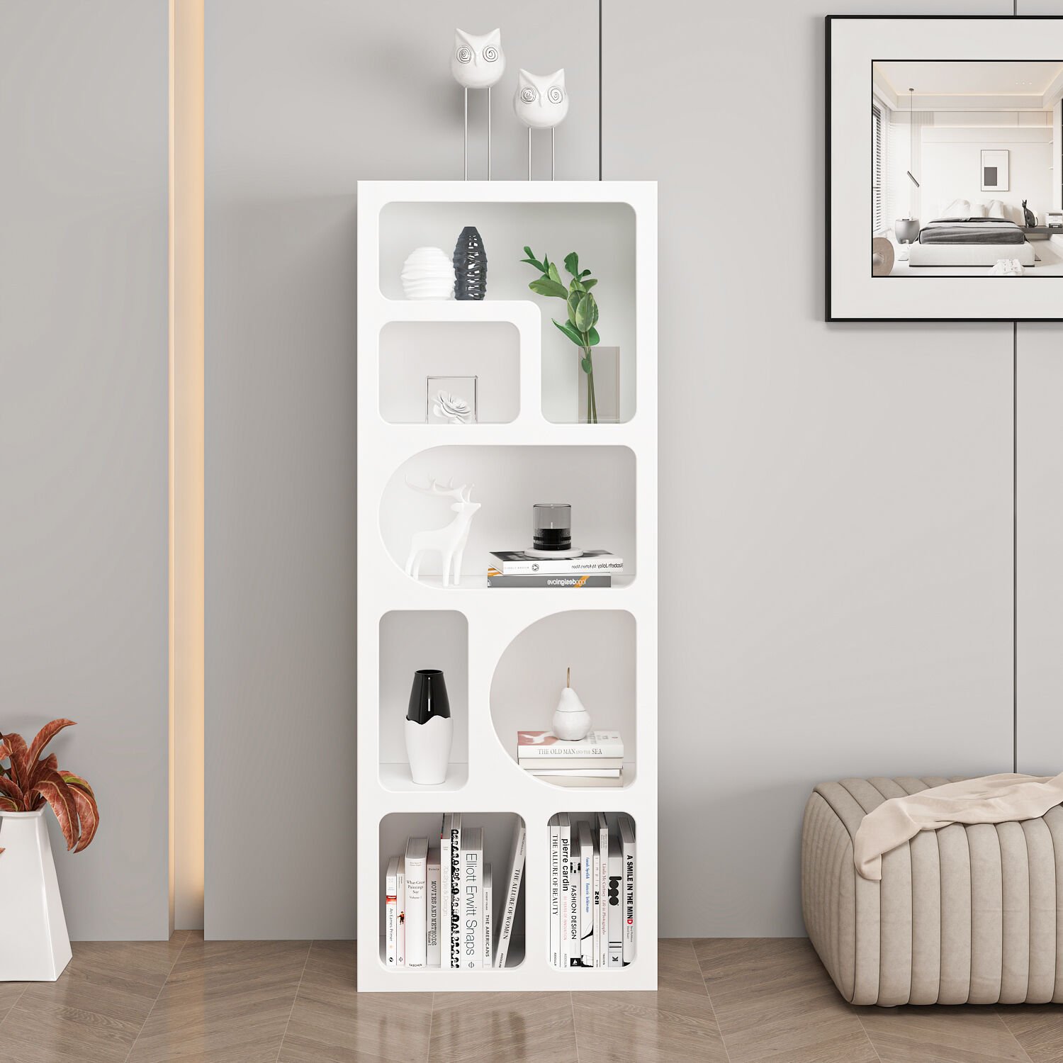 ✅ Raf sayısı: 4 raf, toplam 7 küçük modüler bölme – Kitaplar, dekoratif objeler veya ofis malzemeleri için uygun.