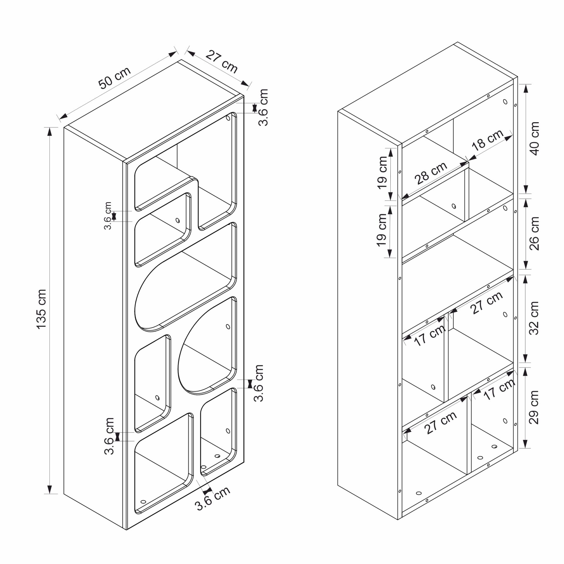 ✅ Ölçüler: Genişlik: 50 cm; Derinlik: 27 cm; Yükseklik: 135 cm.