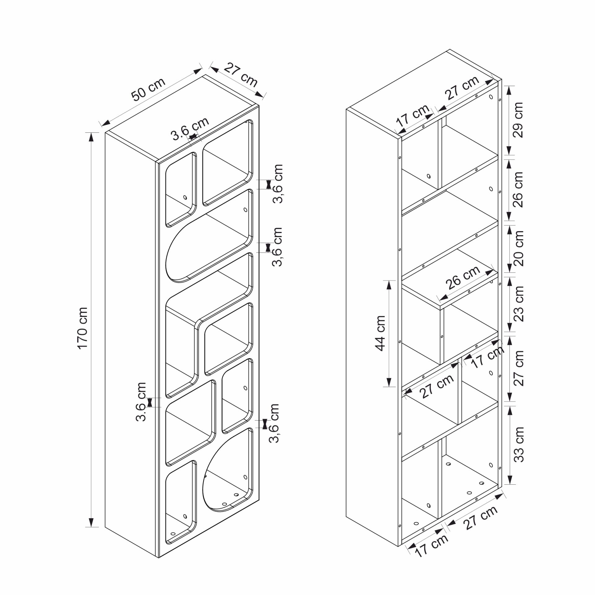 ✅ Ölçüler: Genişlik: 50 cm; Derinlik: 27 cm; Yükseklik: 170 cm.