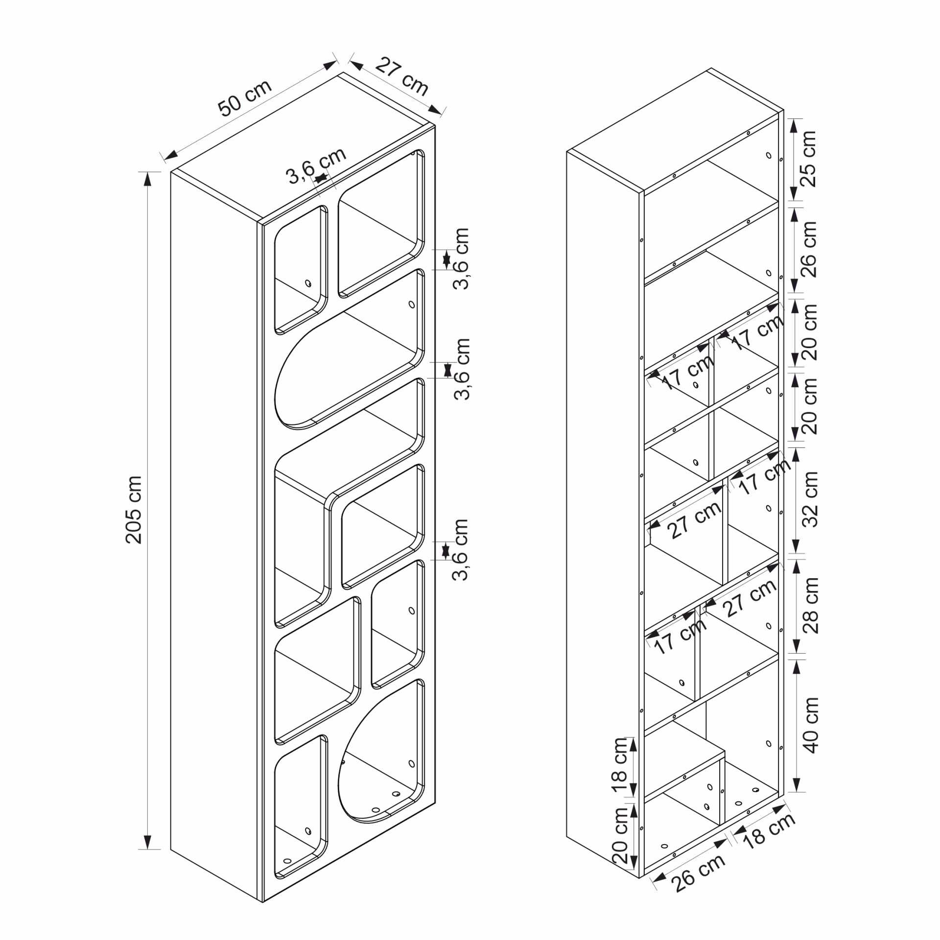 ✅ Ölçüler: Genişlik: 50 cm; Derinlik: 27 cm; Yükseklik: 205 cm.