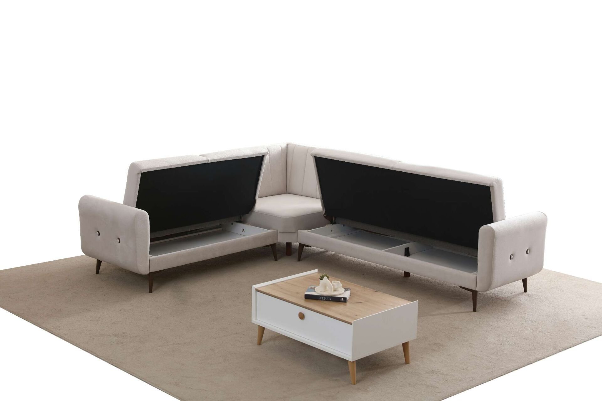 Bona 2 + L Köşe+2' Li Köşe Takımı Bej Valebo-03 Ceviz Ayak