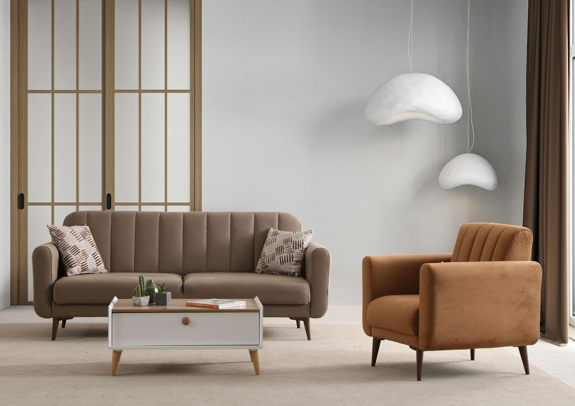 Metal ve kayın ağacından oluşan iskelet sistemi, uzun ömürlü ve sağlam bir yapı sunarken; 30 forta sünger ile kuş tüyü konforu birleşerek ekstra yumuşak oturum hissi yaratır. Geniş oturum alanı, saklama fonksiyonu ve tek kişilik yatağa dönüşebilme özelliğiyle BONA, hem estetik hem de işlevsel bir koltuk takımı arayanlar için ideal tercihtir.