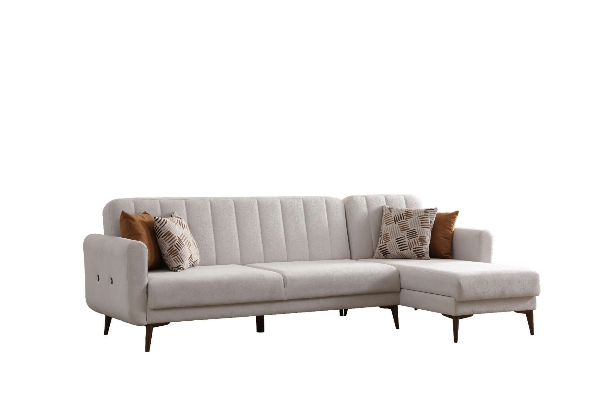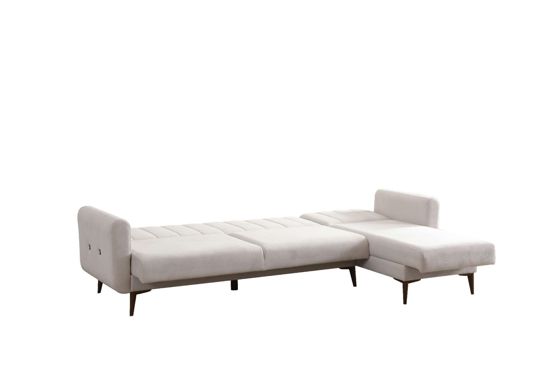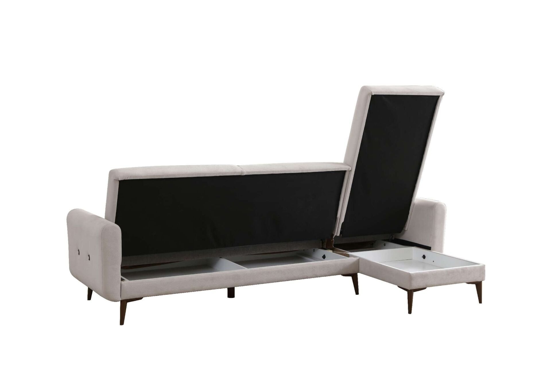 Bona 3+Dinlenme Köşe Takımı, modern tasarımı ve ergonomik oturum alanı ile yaşam alanlarınıza hem konfor hem de şıklık katıyor. Yatak olabilme özelliği ve sandıklı saklama alanı sayesinde pratik kullanım sağlarken, bej Valebo-03 dokuma kumaşı ve ceviz renkli ayakları dekorasyonunuza zarif bir dokunuş ekliyor.