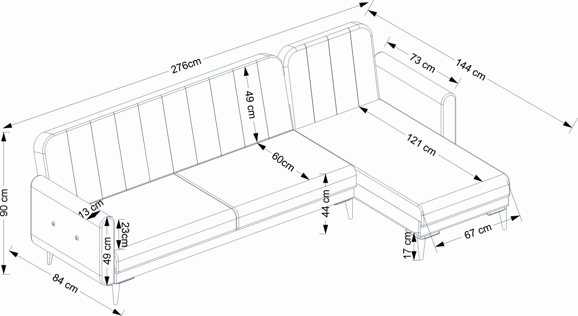 ✅ Geniş Ölçüler – 276 cm genişlik, 144 cm derinlik ve 90 cm yükseklik ölçüleri ile ferah bir oturum alanı sunar.