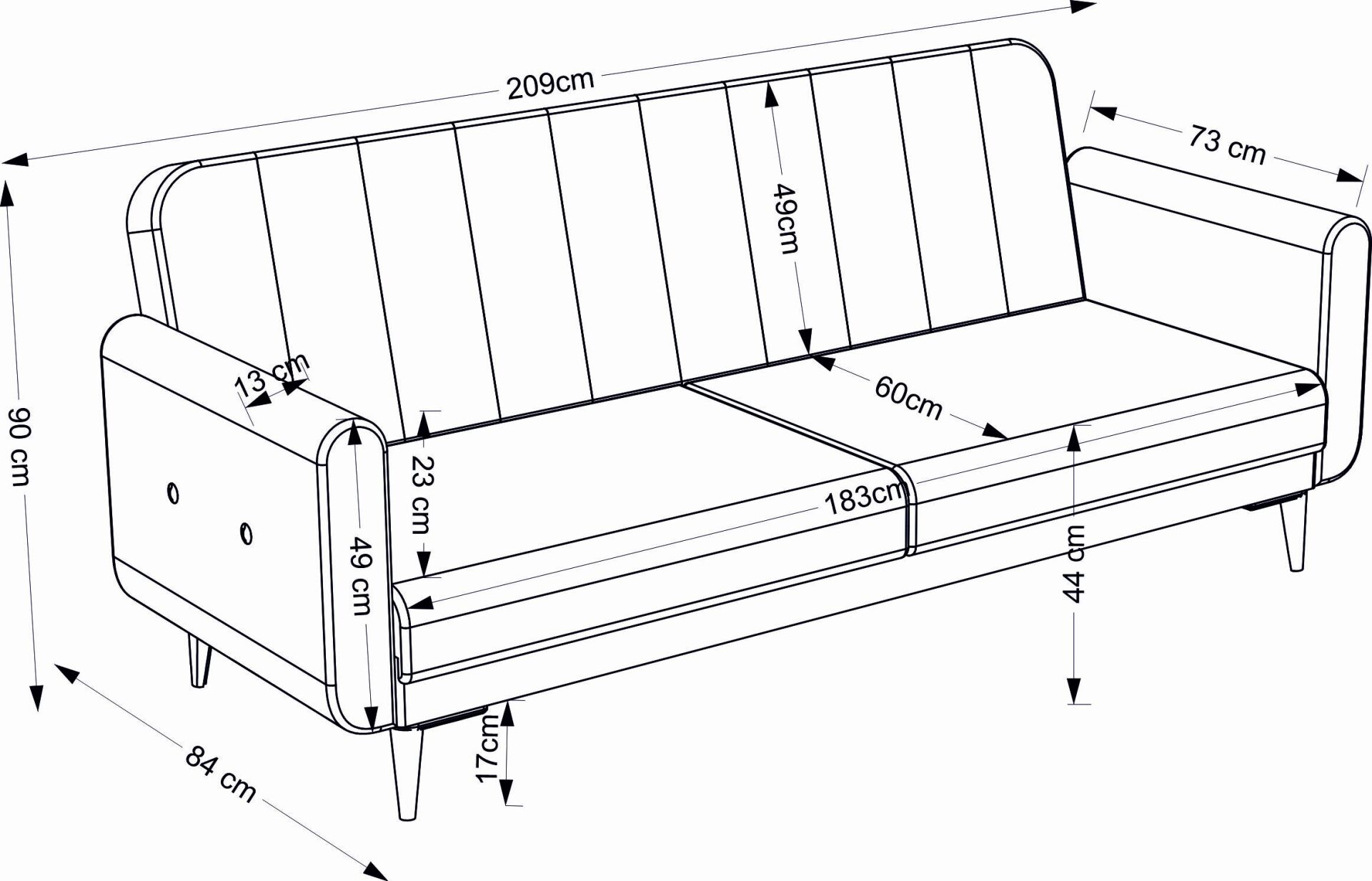 | Koltuk Genişlik | : | 209 cm |