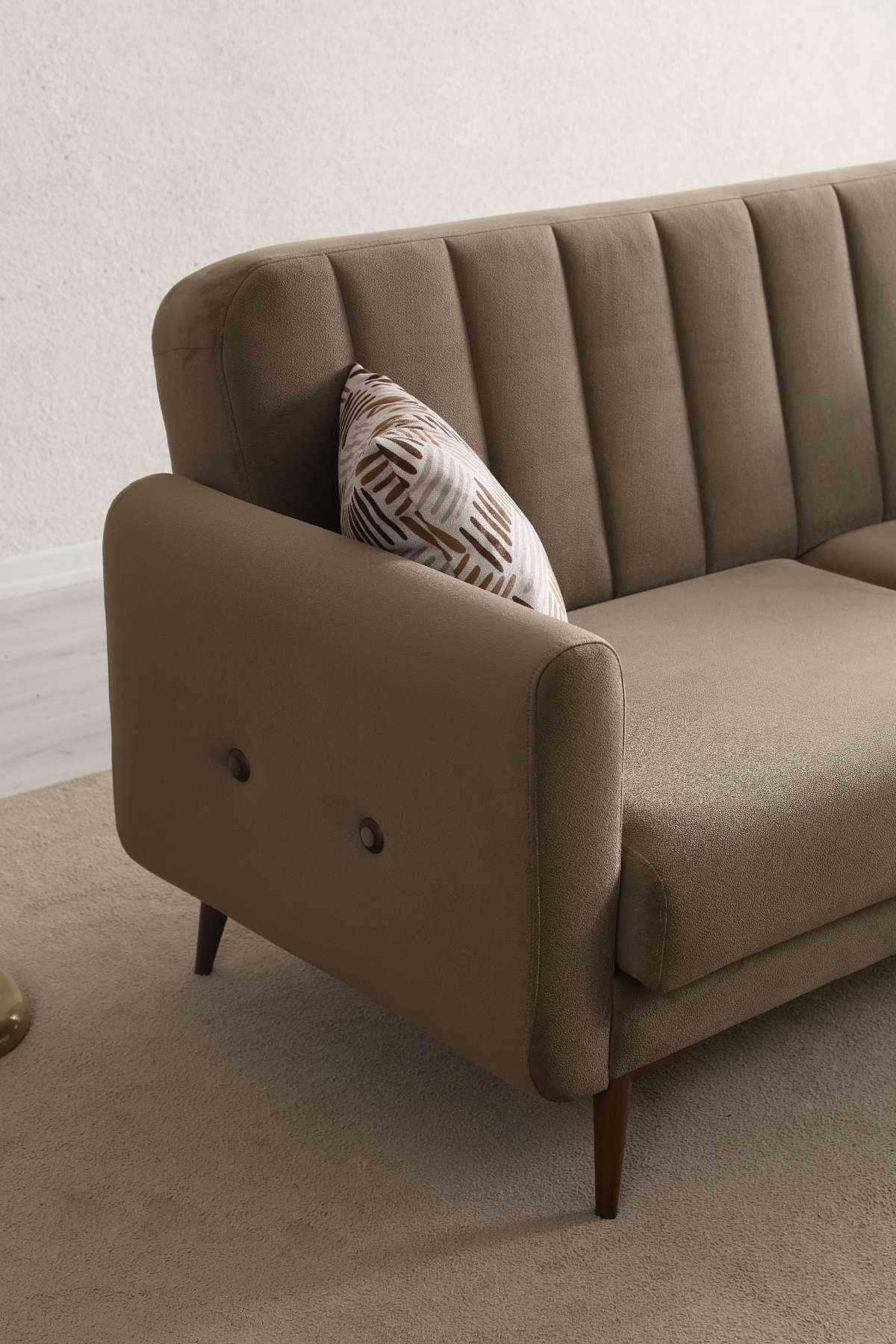 30 forta sünger ve kuş tüyü konforu sayesinde ekstra yumuşak oturum hissi sunar. Geniş oturum alanı ile rahatlık arayanlar için ideal olan BONA, aynı zamanda saklama alanı ve tek kişilik yatak olabilme özelliğiyle işlevselliği ön planda tutar. 17 cm yüksekliğindeki ceviz renkli ayakları ise hem zarafet hem de robot süpürge geçişi için ideal kullanım sunar..