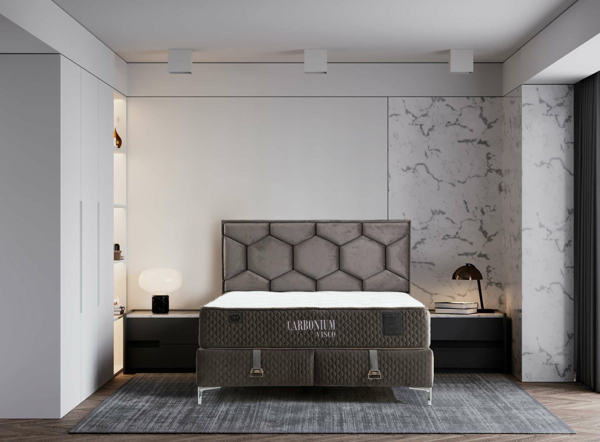 Üst düzey uyku konforu sunan Carbonium yatak, paket yay sistemi ile vücut ağırlığını noktalarına göre dengeli bir şekilde dağıtır.