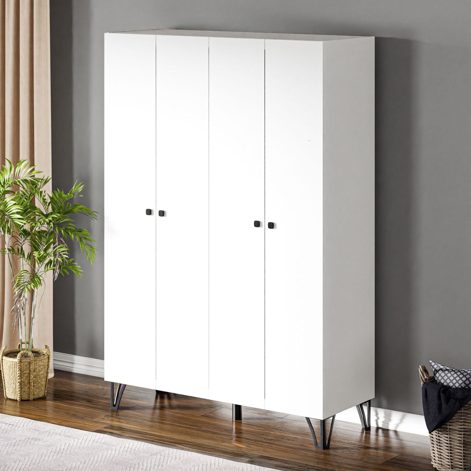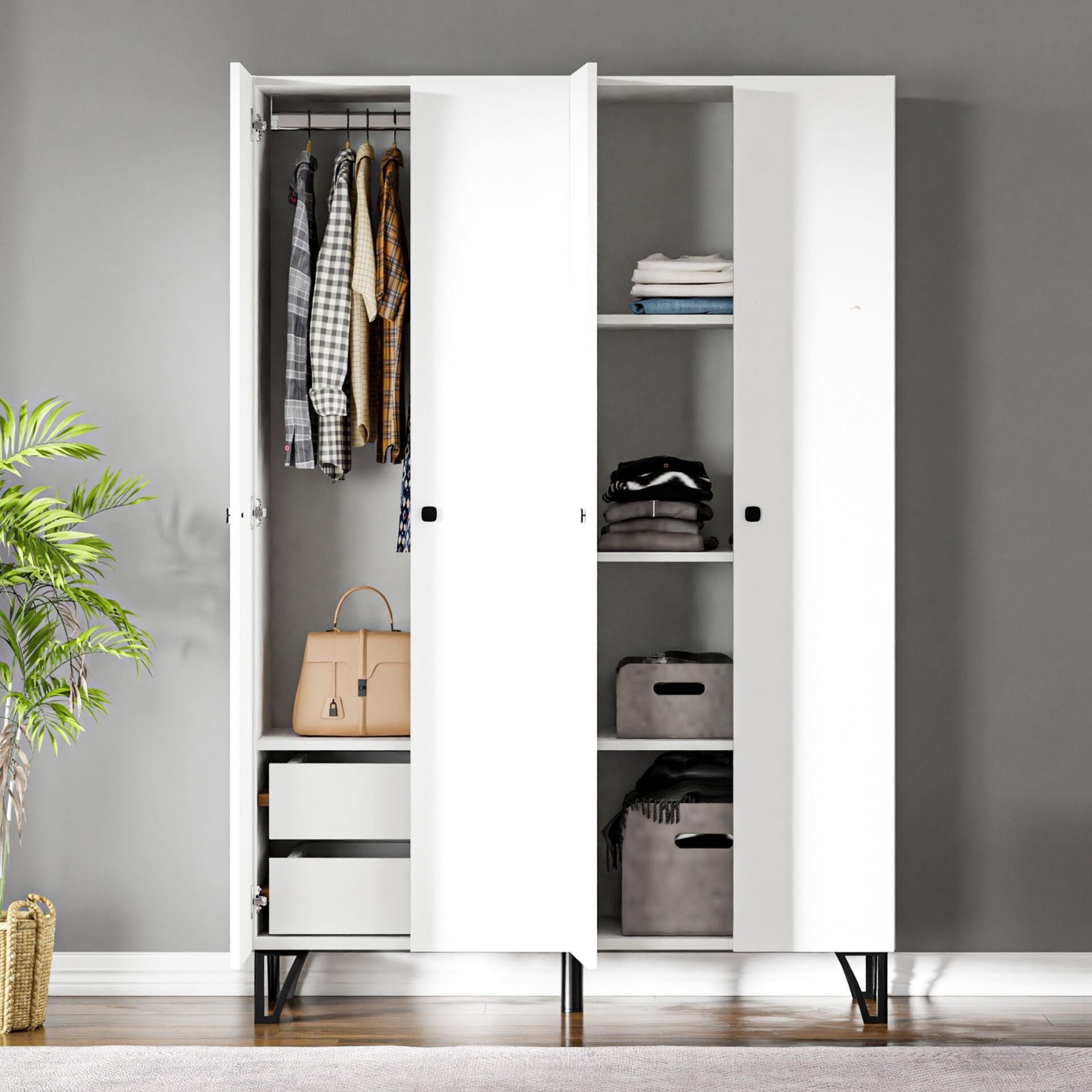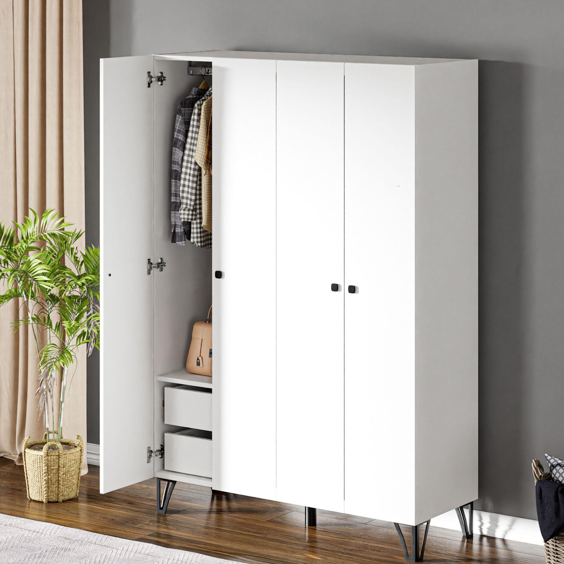 Cera GRM4 4 Kapaklı 2 Çekmeceli Ayaklı Dolap Gardrop - Beyaz