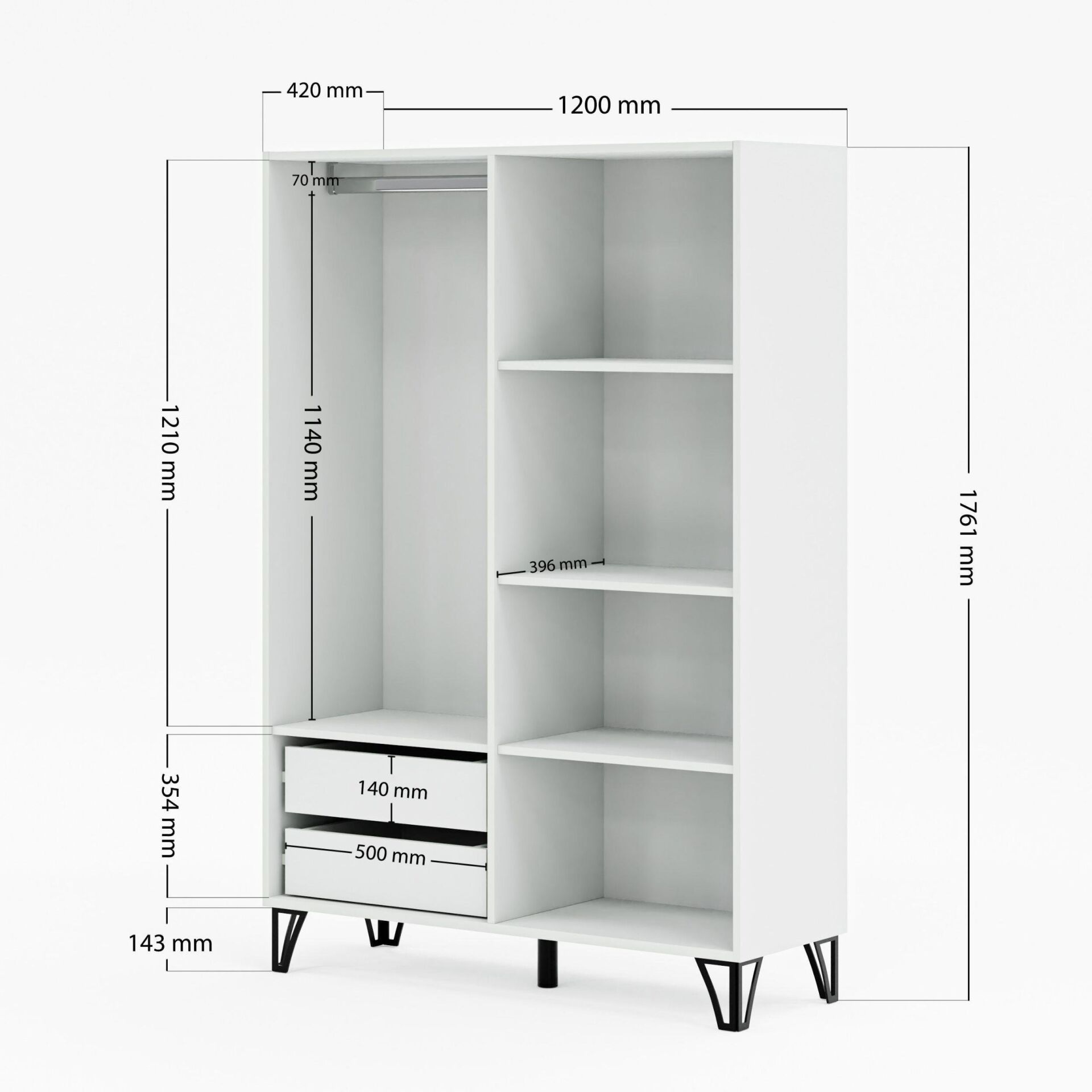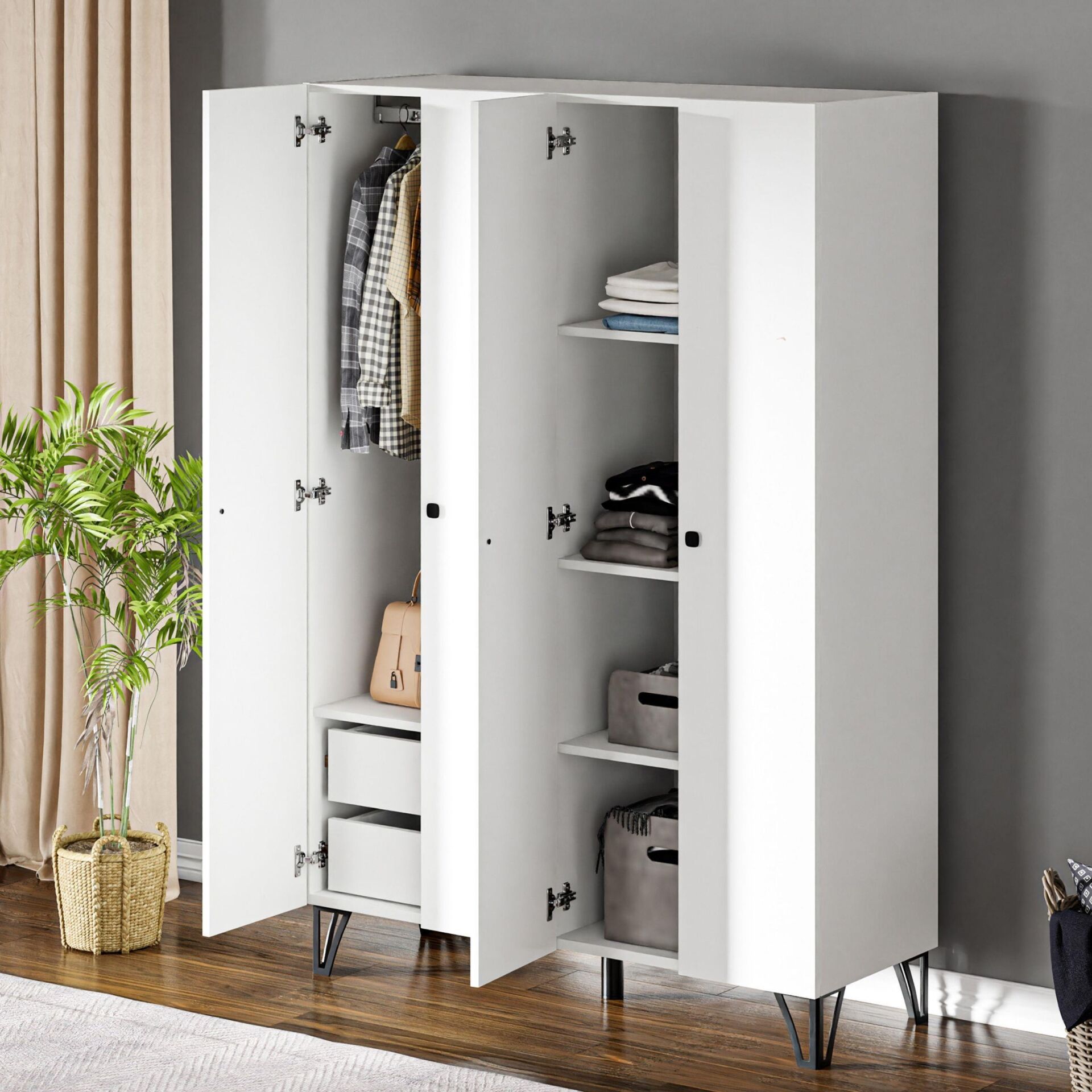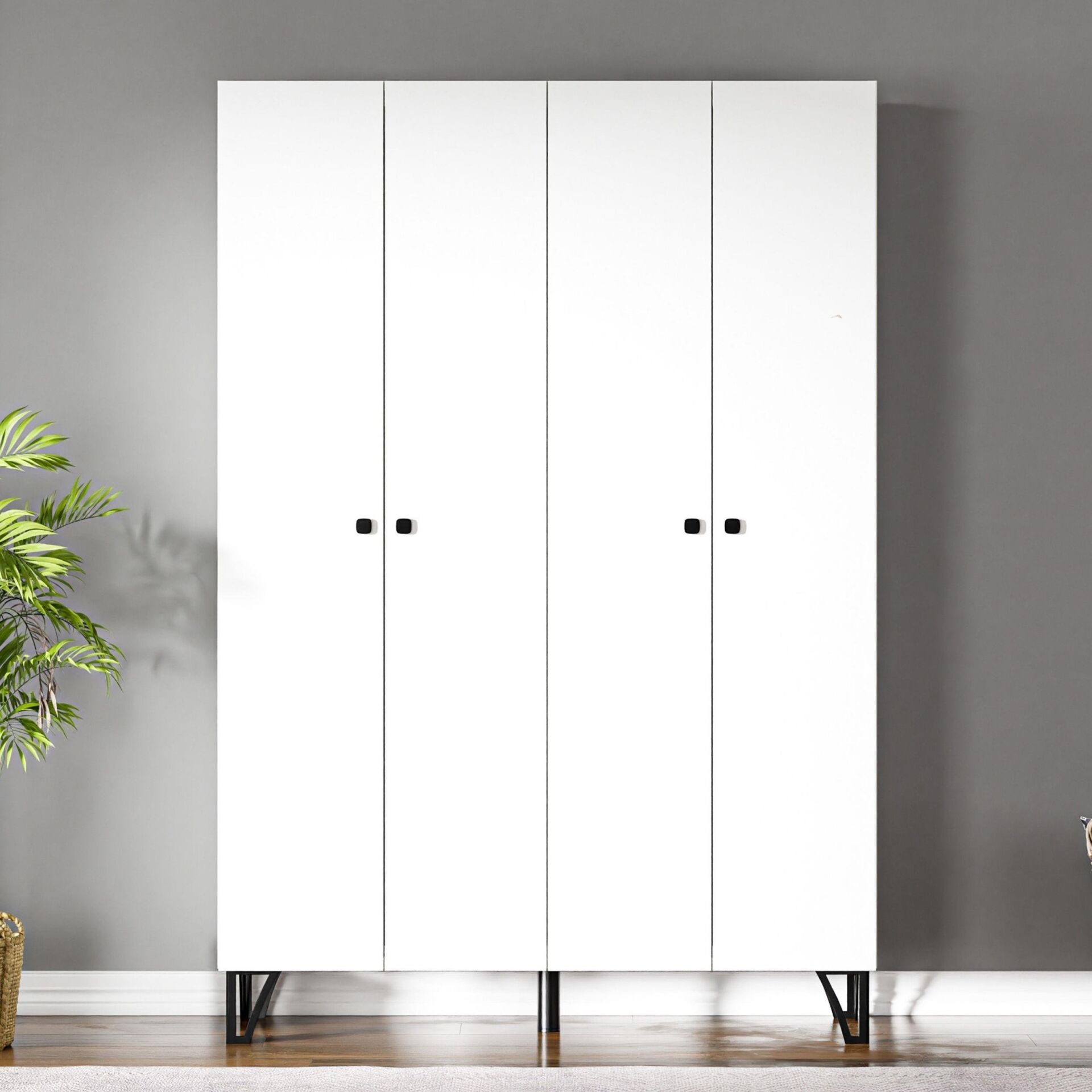 Cera GRM4 4 Kapaklı 2 Çekmeceli Ayaklı Dolap Gardrop - Beyaz