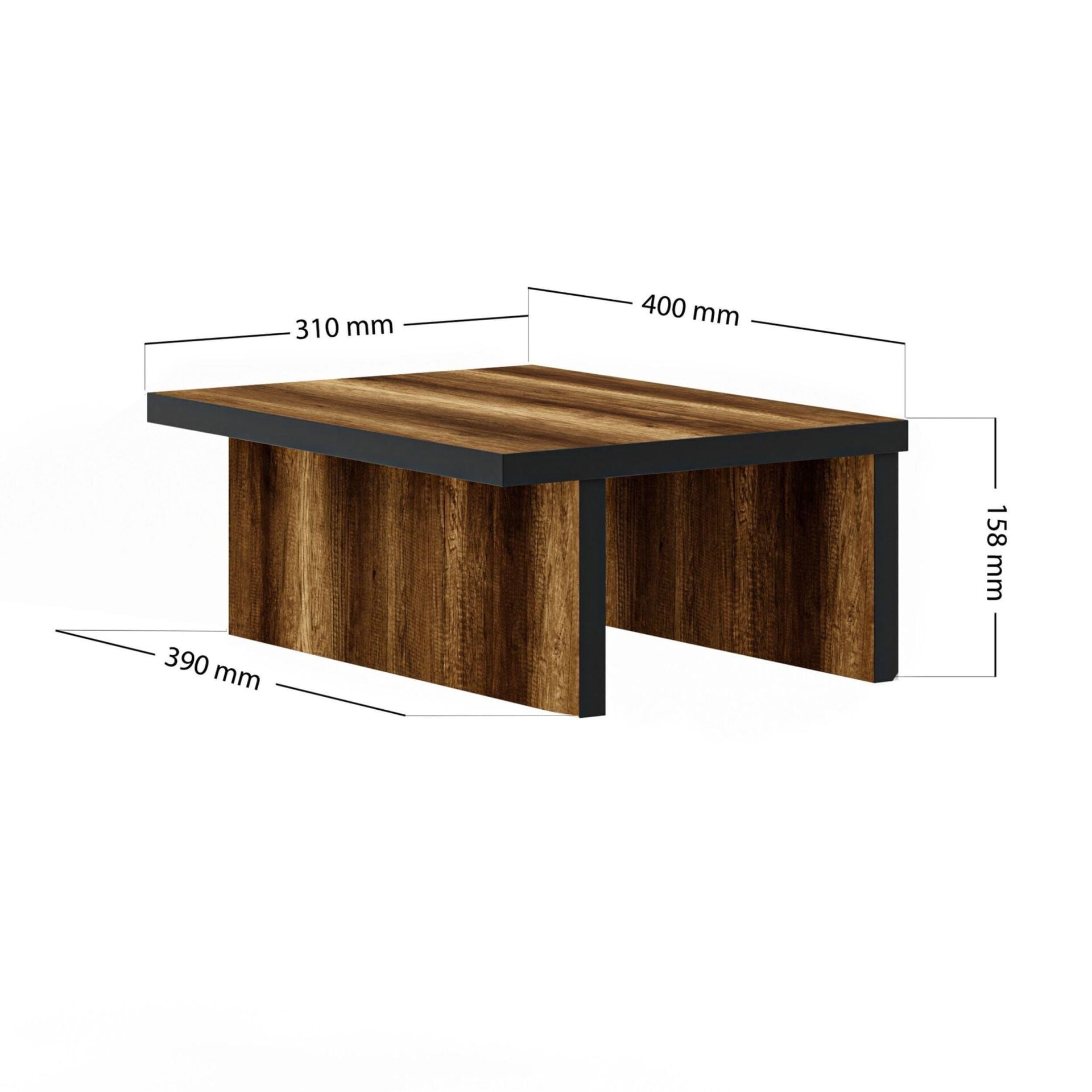 18 mm kalınlığında 1. sınıf suntalam malzemeden üretilen sehpa, dayanıklı ve uzun ömürlüdür. 31 cm genişlik, 40 cm derinlik ve 16 cm yükseklik ölçüleri, sehpayı hem dekoratif hem de pratik kullanım için ideal hâle getirir.